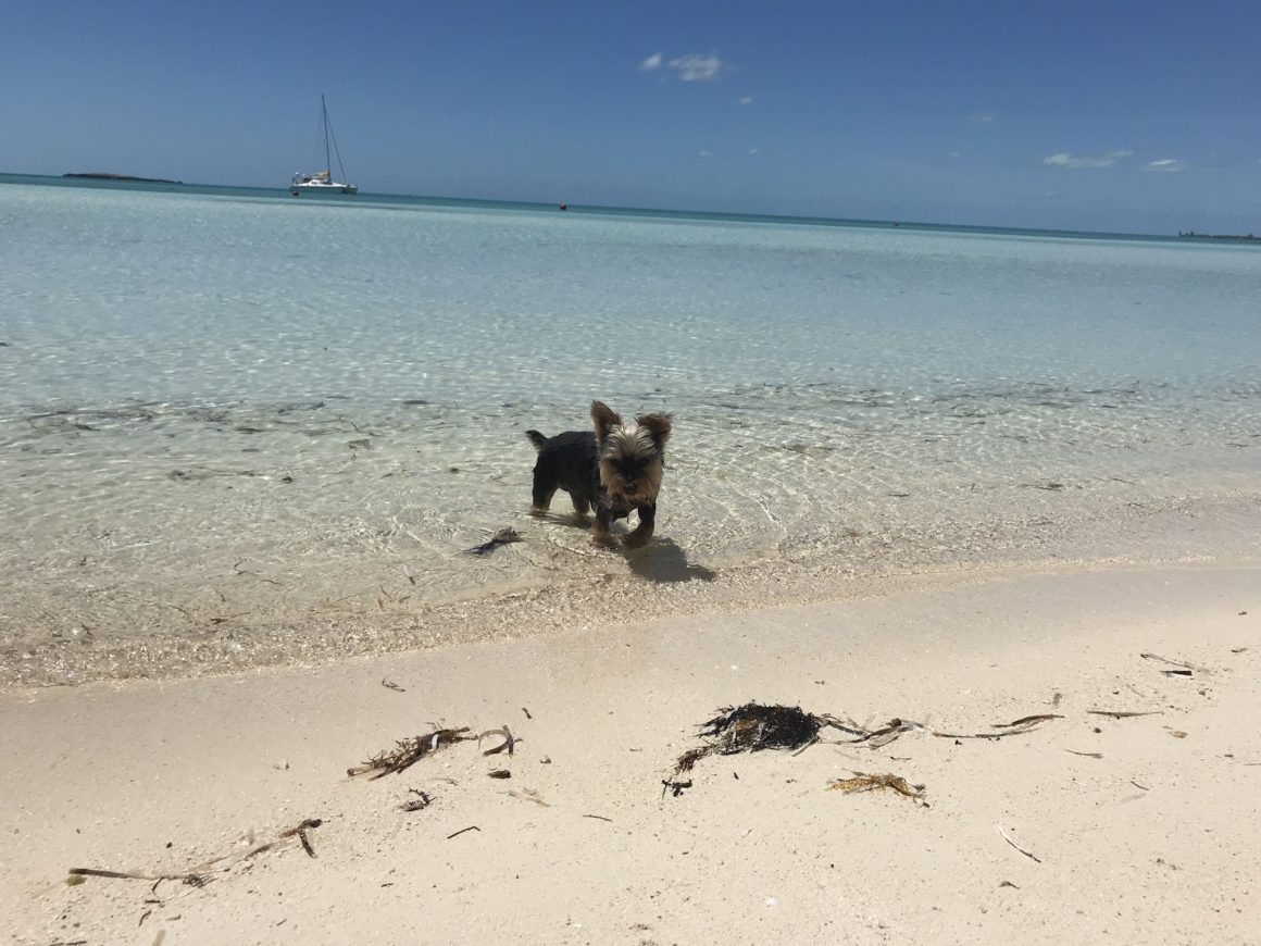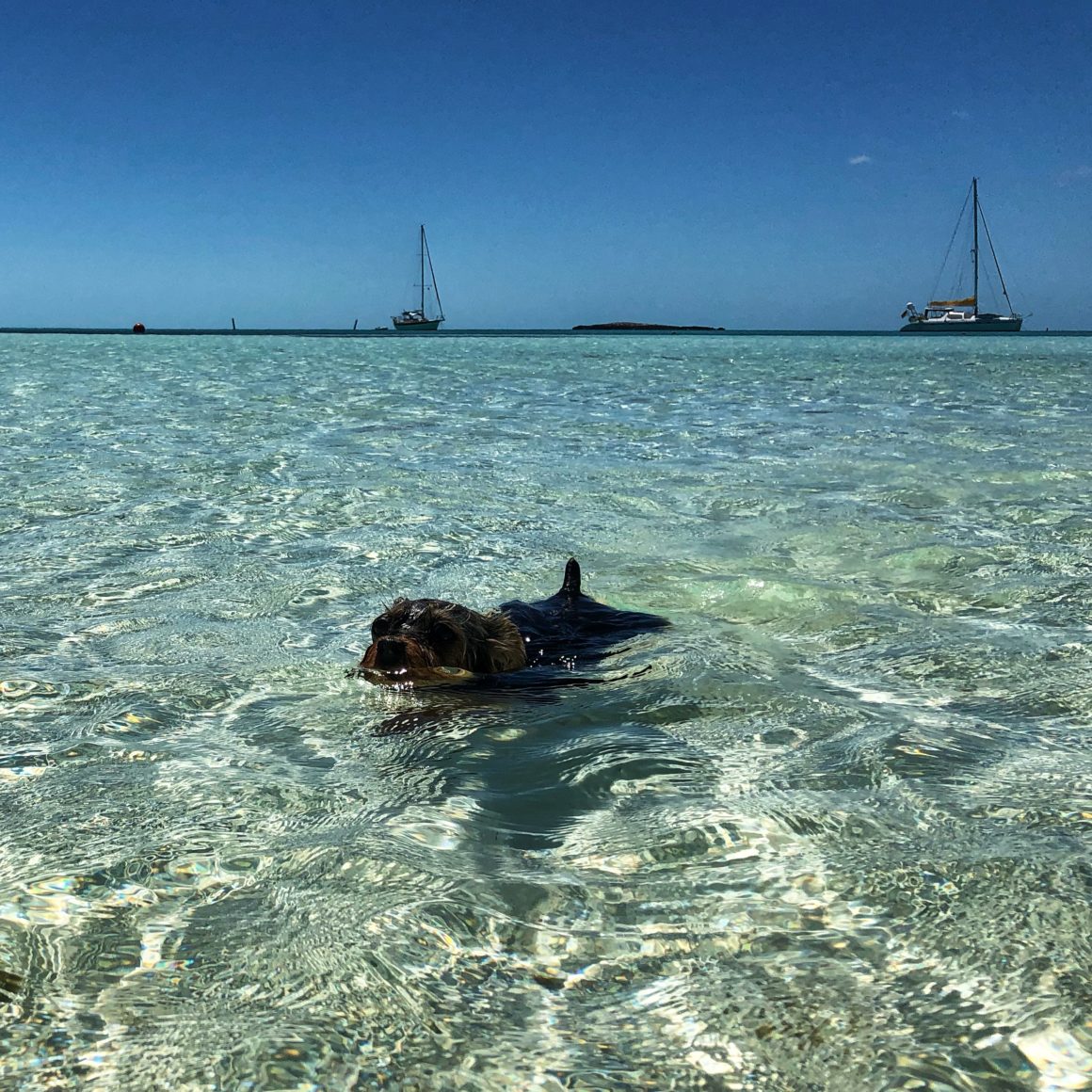 We get lots of obligatory beach pictures before heading back to our boat. Matt has a little more work to do and I set to writing a blog post. Monster takes a final dip in her splash pool before passing out hard on the couch from all the excitement.
