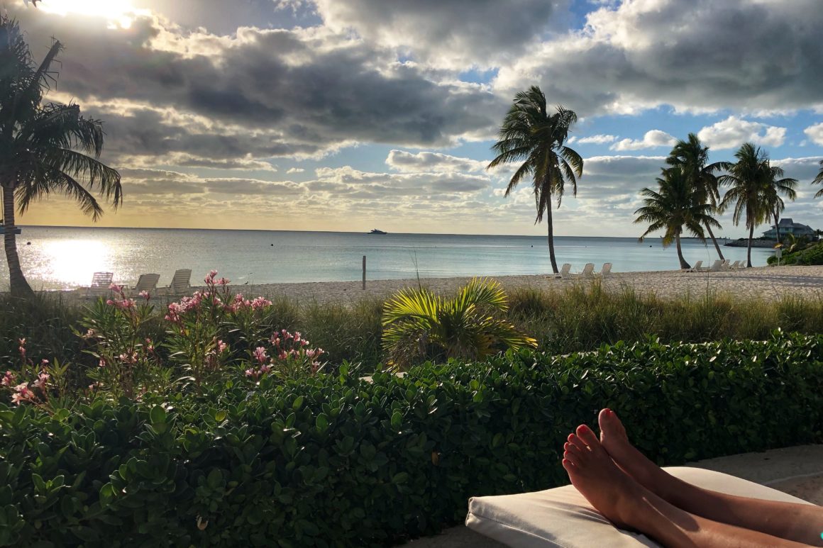 We’re never leaving Chub Cay. At this point, I’m not even sure I want to. I’ve been completely swooned and won over by the gorgeous Chub Cay Club Resort. It has the greenest (fake) grass, most vibrant flowers, and a perfect beach with adequately spaced palm trees that face sunset. What more could you want?