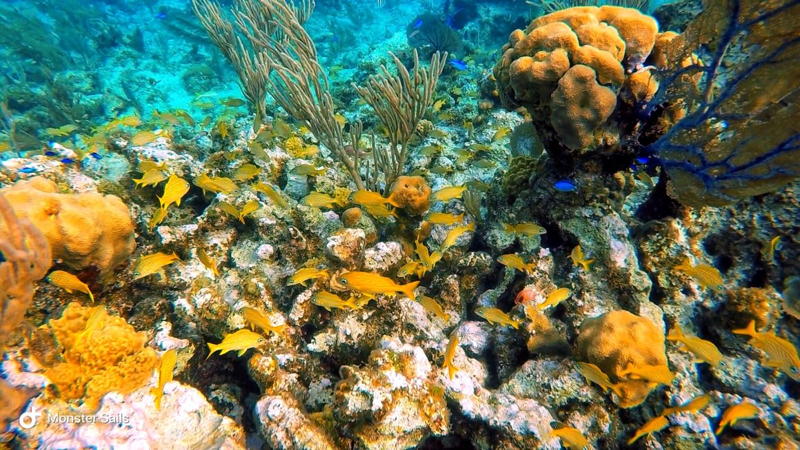 In the morning, Monster and I venture around the marina and stop by the main office to check ourselves in since we arrived late the prior evening. The marina is small, but cute and has a little market onsite. We spot a few more nurse sharks as we check out the rest of grounds which include two beaches: one of the east side “Sunrise Beach” and one of the west side “Sunset Beach.” There is also a small swimming pool and restaurant on site.