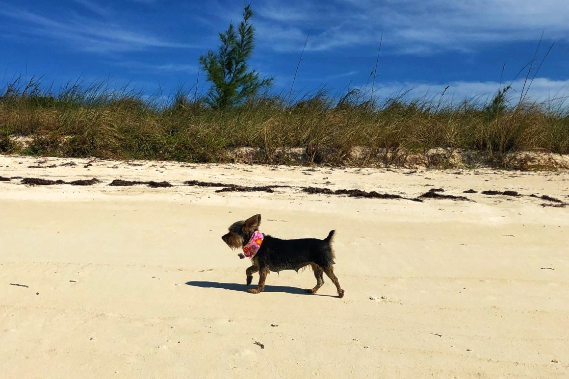 We quickly drop anchor in 8 feet of water with a sandy bottom only 150 feet from shore, and then hop in the dinghy to head to the beach. We spot a shark and a turtle on our way – amazing! The beach isn’t that large but it’s so pleasant to just walk along and take in the fresh sea breeze. We were also able to walk a hundred yards or so across to the other side of the island which faces out to the ocean (we were more protected in a bay area). Monster had way too much fun running up and down the beach and rolling in the sand, making a complete and absolute mess of herself!
