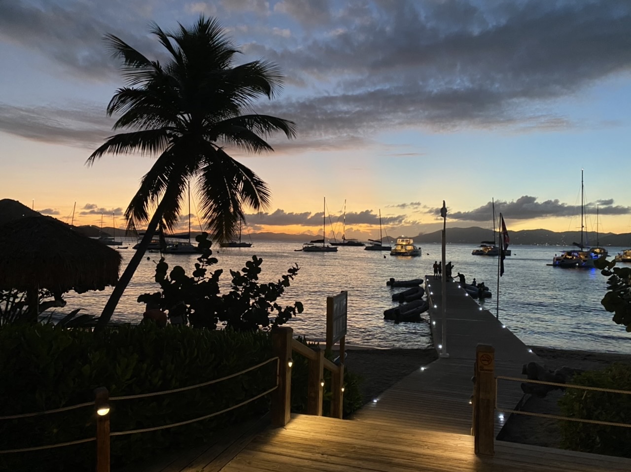 The sun is setting by time we leave The Indians. I’ve picked out a spot on Norman island where we’re supposed to be able to anchor. We pull up to find that info is clearly outdated. Defeated, we just pick up an empty mooring (at least this area isn’t busy) and pay our fee.
