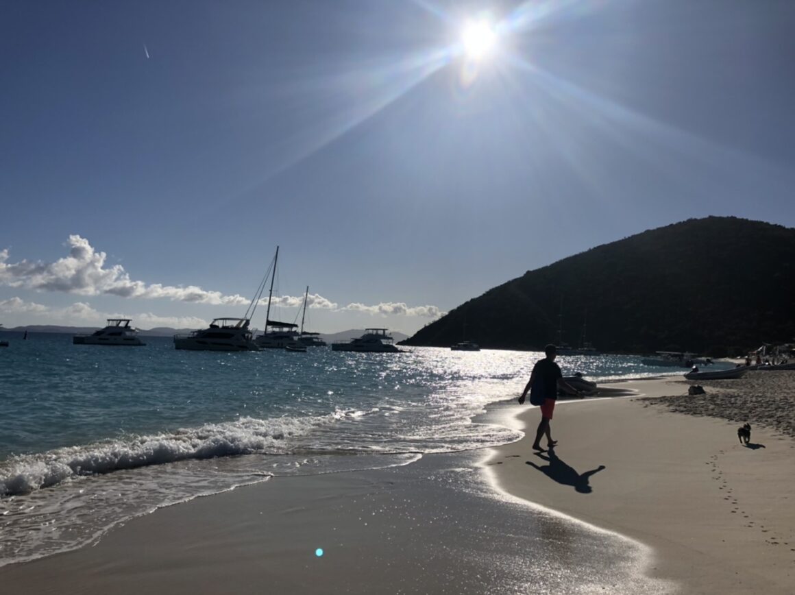 The next day, once Matt finishes up his work, we launch the dinghy and head back to White Bay. It is by far the most gorgeous beach in the BVI. When we came here in August 2017, nearly all the charters had already stopped for the season (we didn’t know that at the time). That meant that we had White Bay and the Soggy Dollar Bar largely to ourselves. That is NOT the case this time. This place is packed! We grab a couple painkillers – the only drink to order at the Soggy Dollar – and wander up and down the beach. This is one of those times where it all feels so worth it. This crazy adventure we’re on is amazing and worth all the blood, sweat, tears, and money – in this moment at least.