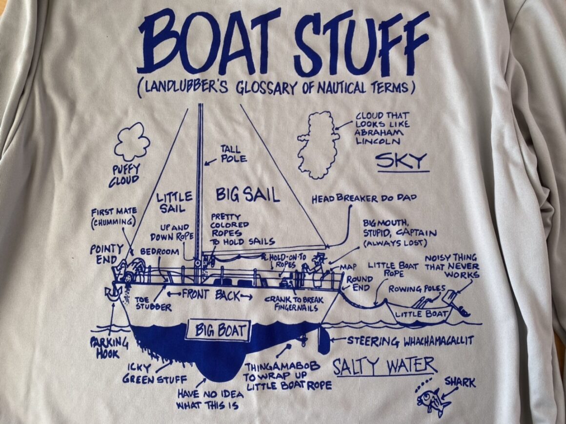 We spend a second night at Great Harbor, before moving over to Little Harbor the next day. This is the location of the lesser known, Sidney’s Peace and Love. In 2017, our catamaran tied up on the dock here Mediterranean Mooring style. We are seriously tempted to try doing this, but since we never have before (and probably never will again), we settle for just picking up a mooring ball. The main reason we are here is because last time I got this awesome, funny sailing shirt. Ever since Matt has been jealous and wishes he got one too – so we’re back. Fortunately, they once again have these shirts!