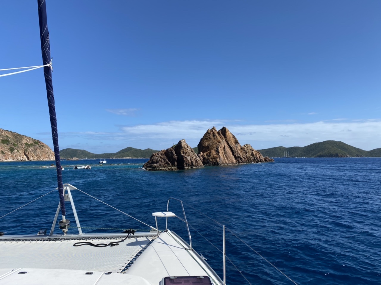 As we approach Norman Island, we notice that a popular snorkeling spot, The Indians, has an oepn mooring ball. I’ve read these can be hard to grab and often require a long wait. We hadn’t planned on snorkeling today, but we decide to capitalize on the opportunity. We pull up, grab the mooring ball like pros (often not the case on charter boats), and quickly make sandwiches for a late lunch.