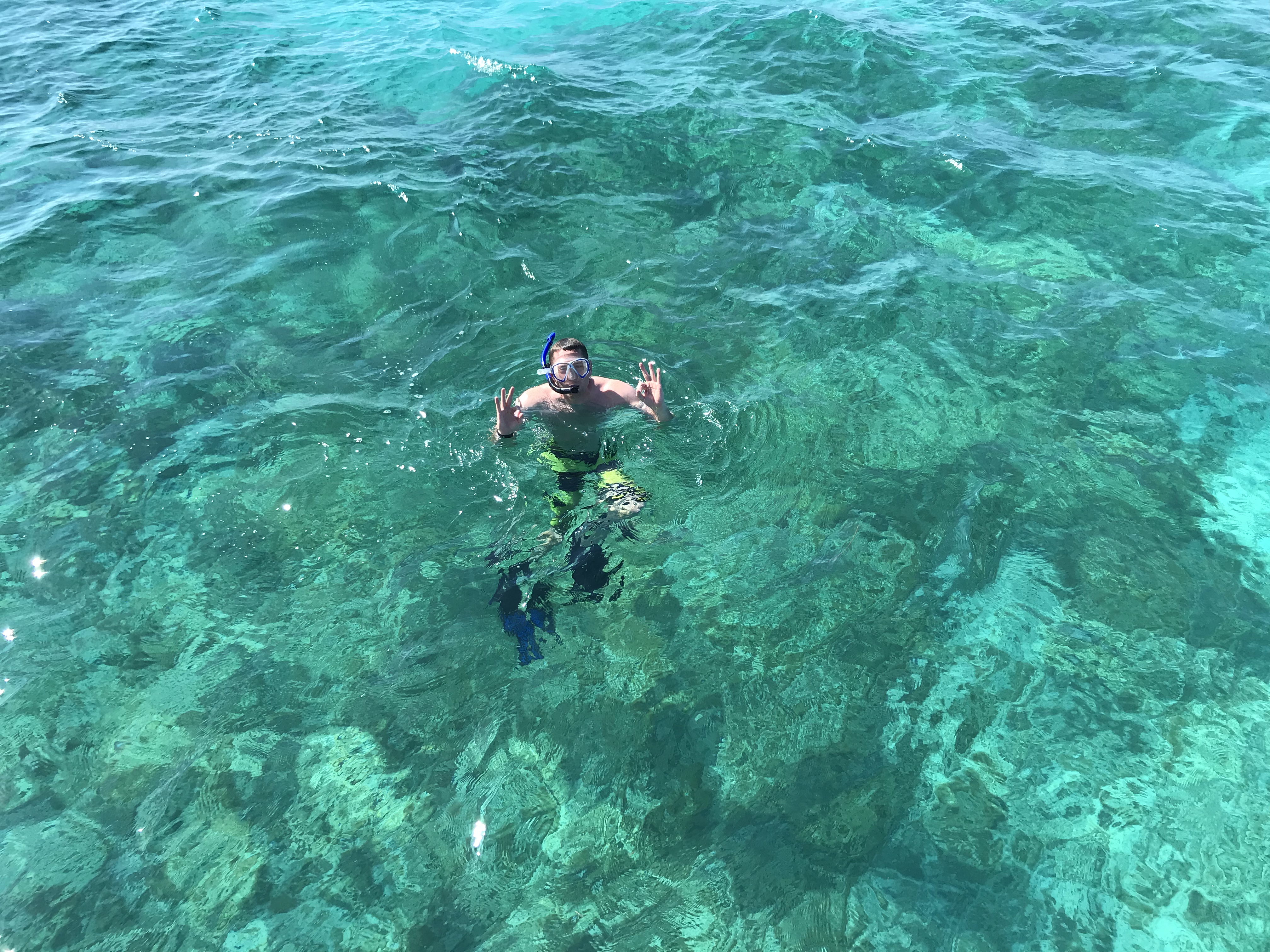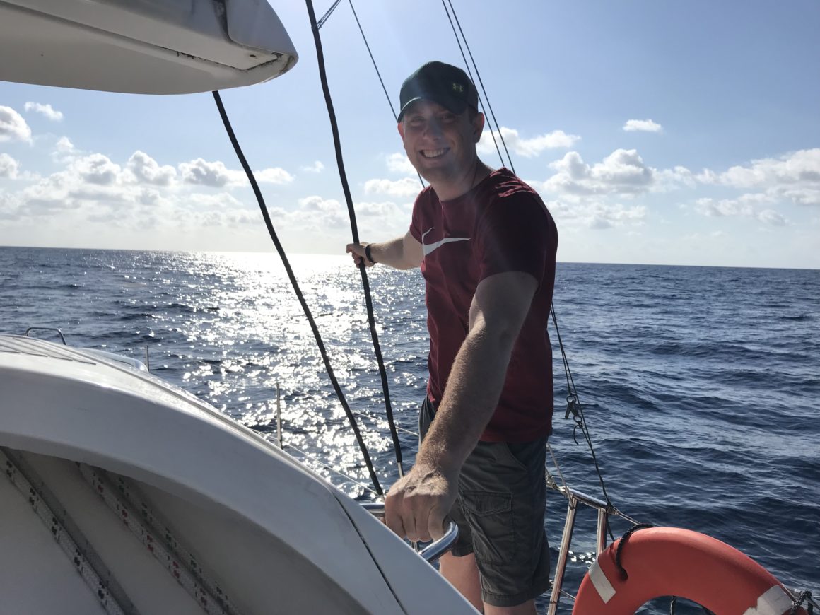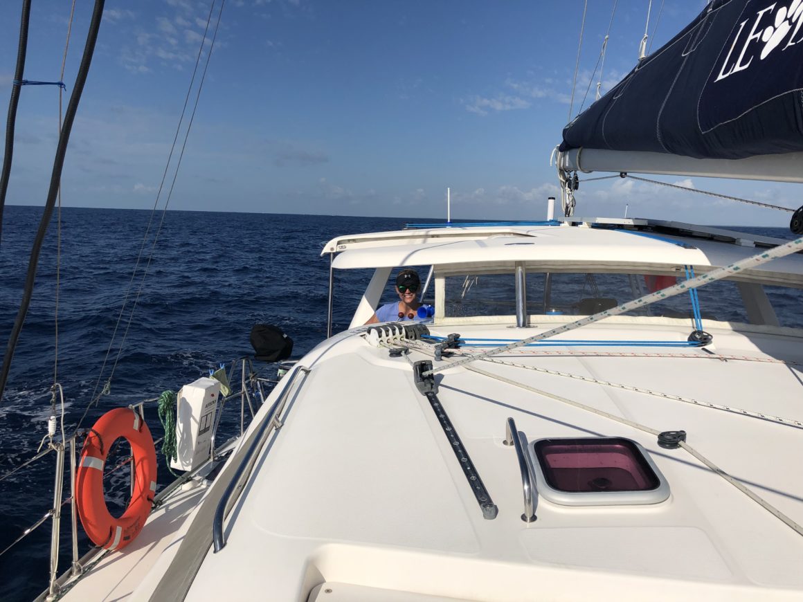 We drop our anchor into a turquoise patch of water than appears to be a sandy bottom. It appears to be set, but ever since we ran around one night, I’m terrified of dragging anchor. I decide that with this clear, somewhat warm water it might be time that we start to dive our anchor. This means that one person will dive down and visually inspect how the anchor looks and whether it’s set or not. I previously googled what “well set” anchors look like, so I quickly noticed that we were indeed not set well. I pull up the anchor and try to right it onto the sandy patch again, then Matt slowly backs up the boat to see if we can get the anchor to set. It takes two tries, but we eventually get a strong set that we feel confident about.