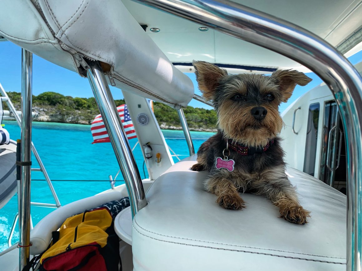 Eventually, we decide to head back to the boat – happy that our first snorkeling adventure was quite a success. Once back, my mom and I decide to break out the paddle boards and take Monster to the beach. Monster is quite adept to the paddle boards and even gets excited when you bring one over to the back of the boat for her to jump on. The best part, though, is when you have two people paddle boarding because she will jump from paddle board to paddle board while you’re underway (if you get close enough of course). It’s quite amusing and makes the activity all the more fun. As we are paddling towards shore, there is a catamaran with a young family onboard cooing over Monster. We head over to say hi and are not only greeted by the family but a nurse shark that seems to have adopted them for the day. It’s a nice size shark and just keeps swimming under our paddle boards and then over to their swim platform for a quick pet (and almost certainly hoping for food).