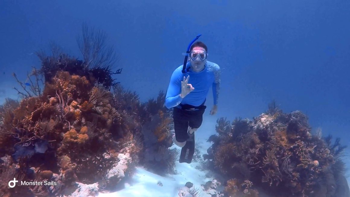 We blow up the inflatable tube for the hookah motor and swim over to the coral heads. The water is still quite shallow – around 10 feet for most of the time, but they are able to stay under a few feet and get much closer to all the coral and fish. Mostly this is just to gain comfort anyways, since they are still considering getting scuba certified. We spot lots of colorful fish, a sea turtle, and a lobster during our time exploring. There is no current today, which makes this a very serene and peaceful place to hookah (or snorkel for Matt and I). After quite some time, I eventually coral everyone back to the boat. We still have some more snorkeling to do today, so I don’t want everyone too exhausted.