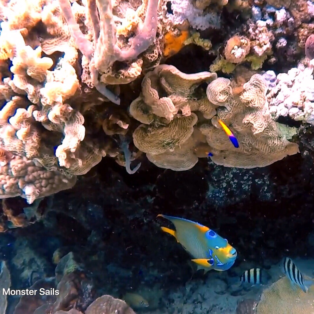 One of the main things my parents want to try while on this trip is the hookah dive system. Fortunately, the weather and location work out well and we are able to get it all set up. Last time we had visitors from Matt’s family, we weren’t able to use the hookah – which was pretty disappointing. We start with a quick safety briefing, before getting my parents all set up with the gear. Initially, we start by just snorkeling around the boat, while breathing through the regulator. next, we give them some weights so that they can actually go down to the bottom and get comfortable being under water. They do quite well, so we decide to try getting them over to the nearby reef, in order to give them the full experience.