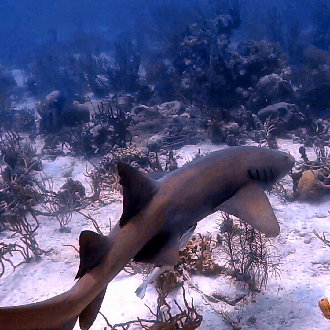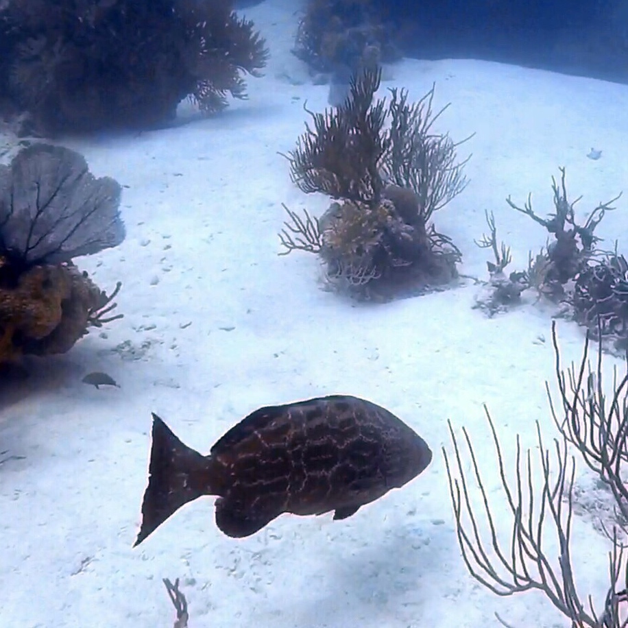Last time we snorkeled the sunken plane, the current was so strong that I only let go of the mooring line once – to chase a turtle and completely tire myself out. This time, we’re really hoping to visit at slack tide so we can not only dive down to the plane but enjoy the large coral heads nearby. Luckily, we manage to time it pretty close and don’t have too much of a current. We are all able to snorkel the area freely, enjoying the coral as well as a quick look at the plane. Shortly after getting in the water, a large nurse shark swims by which gets us all pretty excited -it just never gets old. We also spot a very large grouper while snorkeling here.