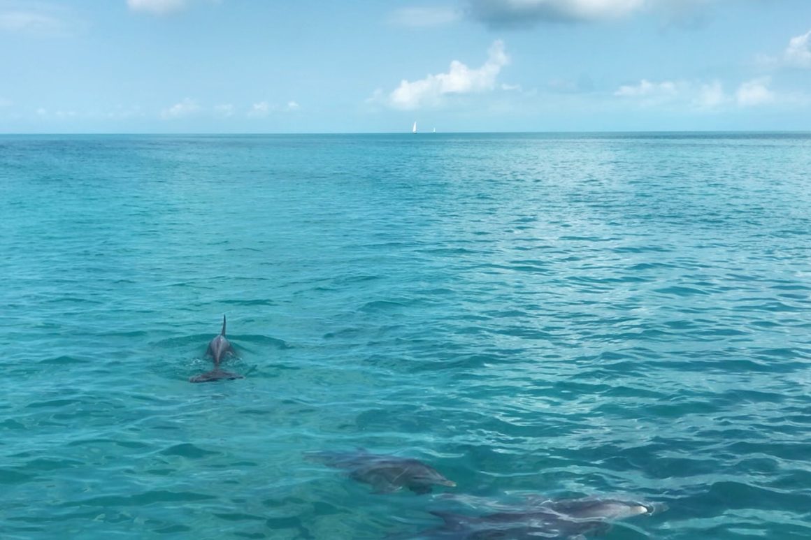 Traveling down the coast of Florida and the ICW spoiled us – we saw dolphins almost every single day. Since being in the Bahamas, we’ve seen zero! Until now. We have an amazing encounter with a small pod of dolphins as we are leaving Rock Sound Bay. The critters of Rock Sound seem to love us for better (dolphins) or worse (bugs).
