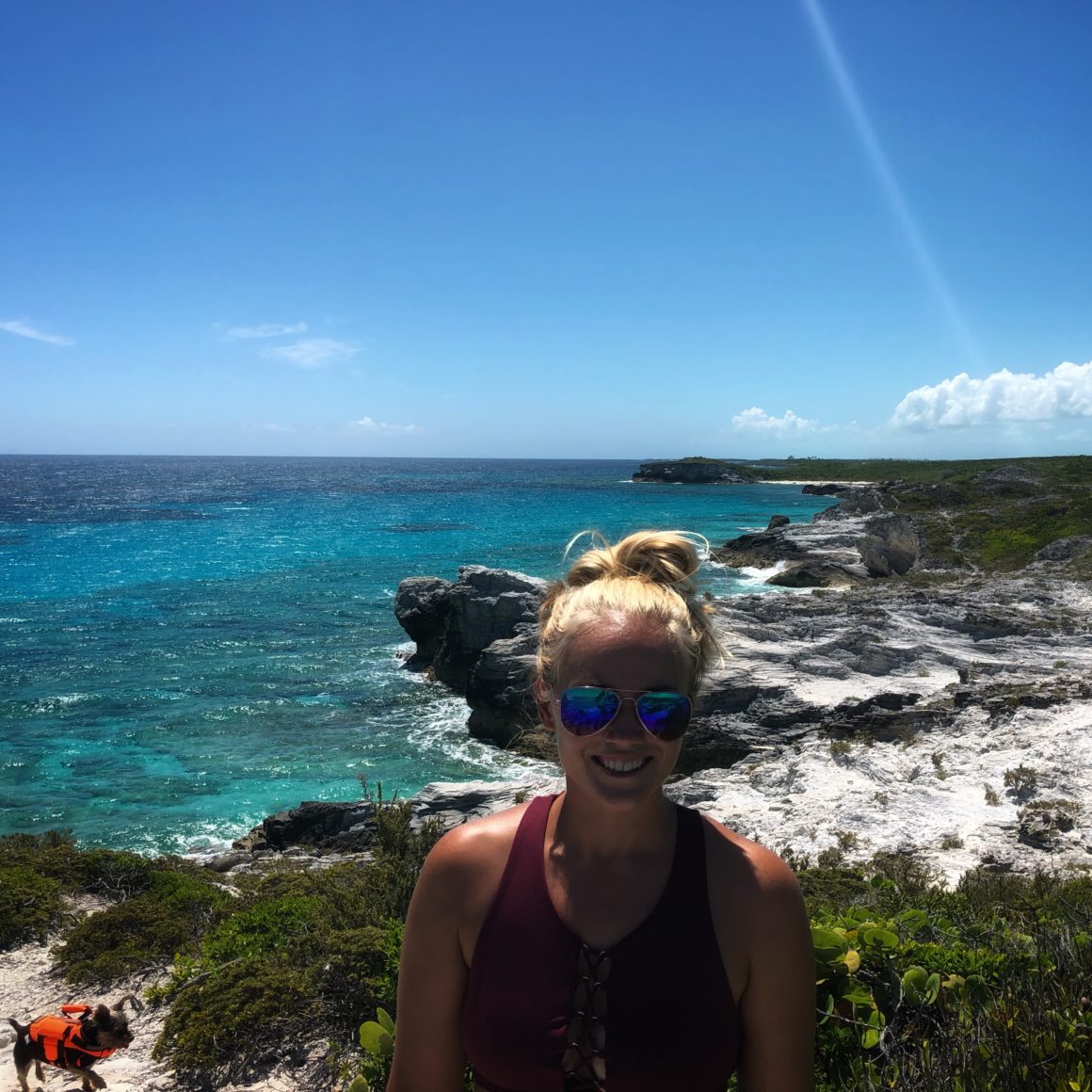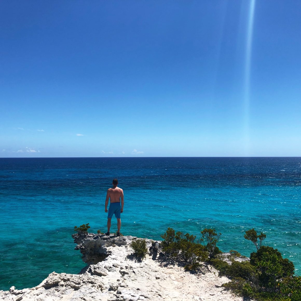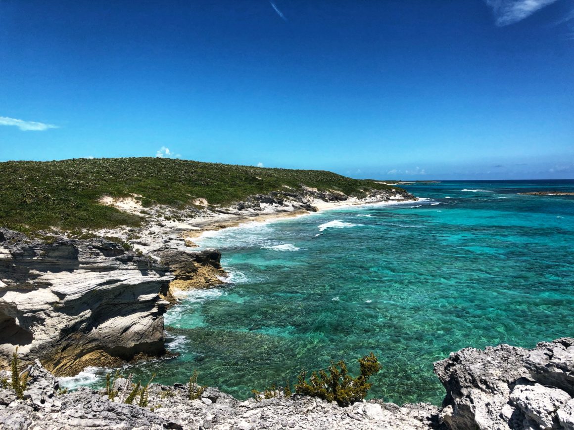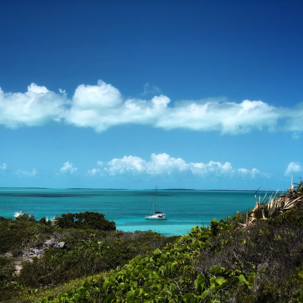 The next morning we head back to shore in search of the trail we spotted others climb. It isn’t marked, but also isn’t difficult to find. A short 5 minutes later and we are standing up on top of the hill with pretty views of our anchorage and even more stunning views of the Atlantic ocean and Exuma shoreline. It is definitely worth the short climb.