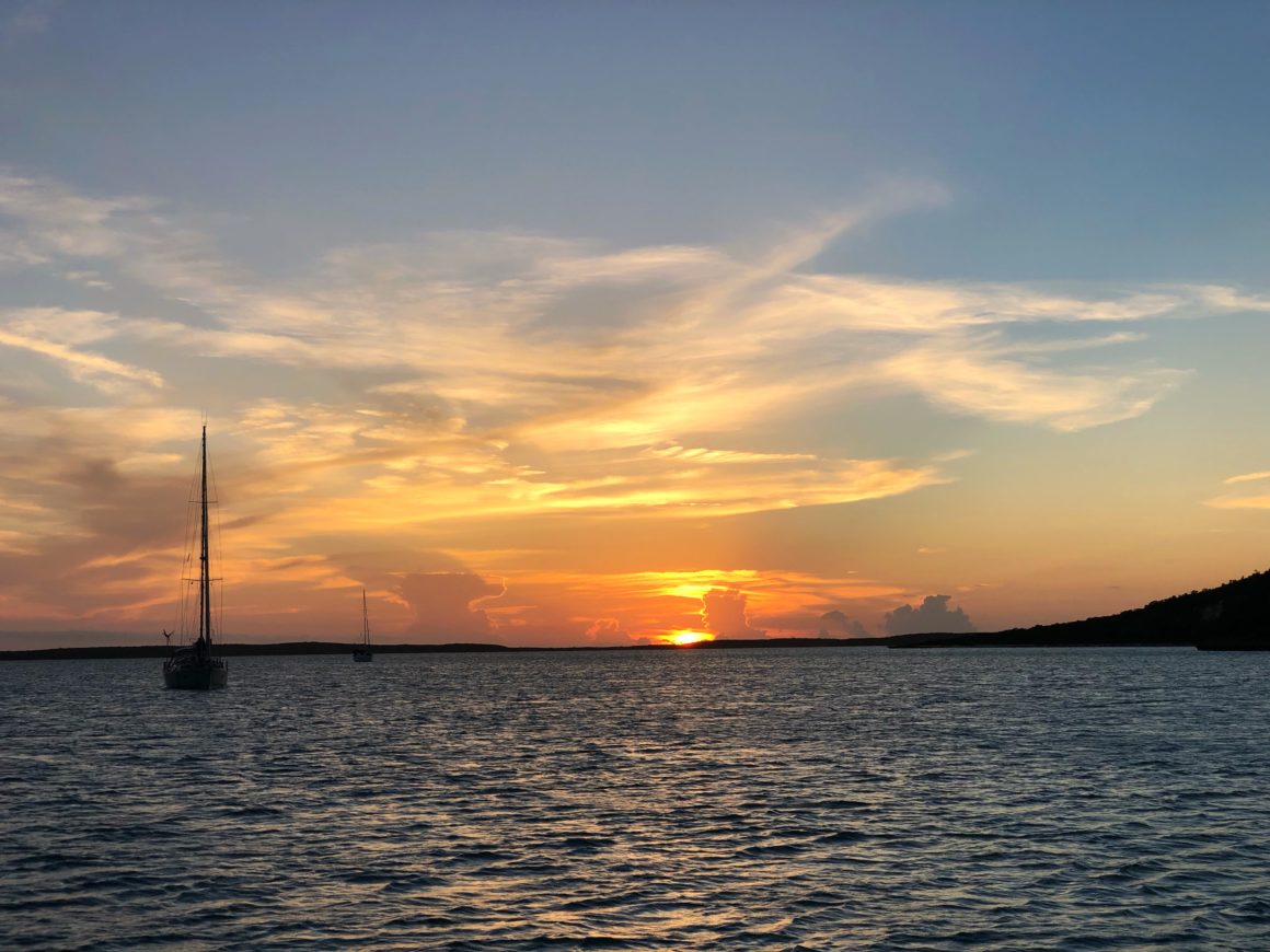 We pull into the anchorage a little before dusk, joining a dozen or so other boats already anchored. We begin to explore our options – namely, what to eat for dinner. Unfortunately, in the Bahamas you can’t just jump on Yelp for assistance. Google does normally have some photos and reviews, so we turn to that. It is nearly impossible to find menus for places, though. So frustrating. I hate to be picky or sound high maintenance, but I want to know what type of food is being offered. I also want to know the price. A $10 cheeseburger is way different than a $25 cheeseburger – but I digress. We eventually find some information about the restaurants and conclude that one of them is likely closed (permanently), one of them closes in a few minutes at 7 pm (seriously?), and the other only has dinner entrees starting at $20. By time you add on 12% VAT and 18% gratuity that becomes a pretty expensive dinner. We decide to pass and just cook on-board. This means we also decide to pass on laundry. Why did we even stop here? Oh, well.