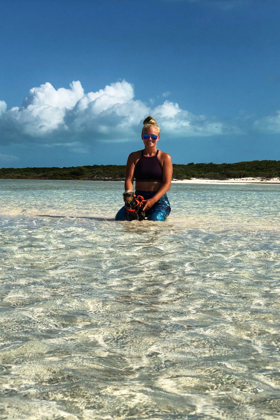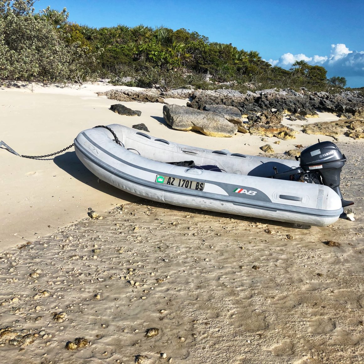 After some time, we realize we were wrong about another thing. It was not low tide when we showed up here. The tide is much lower now, with several bars of sand sticking up out of the water completely. We let Monster run around the sand, surrounded by water, while we take some silly photos. It’s all fun and games until we look over at our dinghy which is now stuck very far up on dry beach. We begrudgingly head over and try to pull it back towards the water. It takes a lot of effort and quite some time. Thank goodness Matt is much stronger than I am or we would have to stay and wait for the rising tide. We eventually get it back in the water and are able to walk it through the shallowest parts before hopping back in and heading towards home. – without a single sand dollar or starfish.