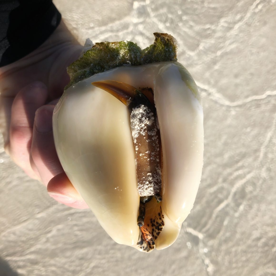 We have a great time shuffling along, pulling up sand dollars for a quick peak, before placing them gently back under the sand. I desperately want to find a sand dollar to keep, but we don’t want to take anything that is still living. In addition to dozens of sand dollars, we also find a few (living) star fish, including the smallest little star fish I’ve ever seen that Matt somehow stumbled across. I got ridiculously excited when I thought that tiny star fish was already dead (which is quite morbid, actually). I was already envisioning where the star fish would go in my jar of shells when Matt informed me that it was still alive. Darn – but, I guess that’s good. We also found a several different (living) conch in gorgeous shells. Ugh – it’s like torture not being able to collect these items as souvenirs, but then also really exciting to see that they’re alive and thriving. I’m not sure if I’m happy or sad. I am glad we took lots of photos at least, though.
