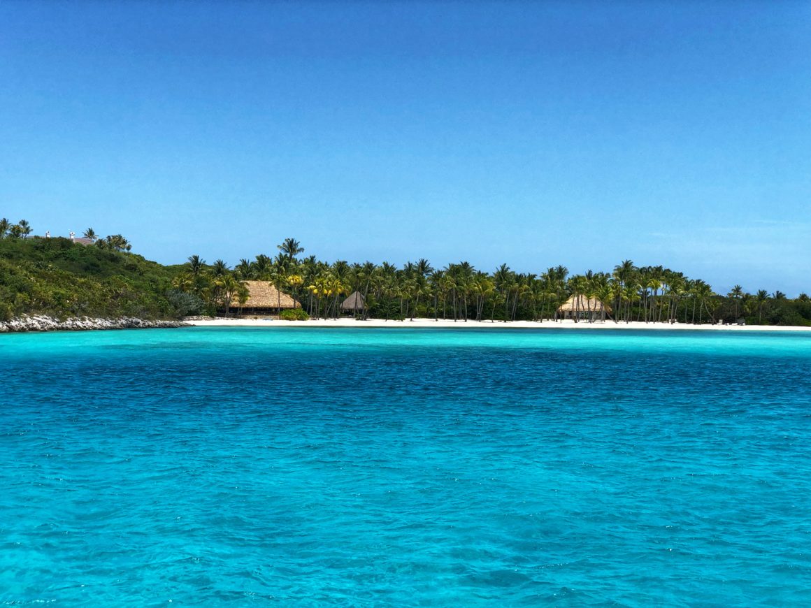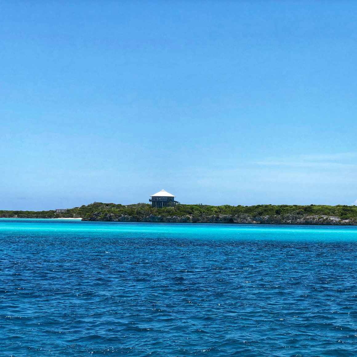 We know that Rudder Cay is owned by David Copperfield, the famous magician. According to Google, though, he actually owns 11 islands in the area. One of the more well-known of those is Musha Cay. He has a small, secluded resort on Musha Cay that you can actually vacation at. That is if you have a lot of money to blow. A single night stay starts at around $37 thousand a night – no that’s not a typo. I can’t even imagine. It is gorgeous though. We see a woman walk out of one of the rentals, talking on the phone, and think about how much it is costing her to be standing there on that porch. It’s pretty amazing that we are able to be only a few hundred feet from these type of places and largely enjoy the beauty of them. Matt always likes to say that our catamaran sailing by is part of the reason their view costs so much.