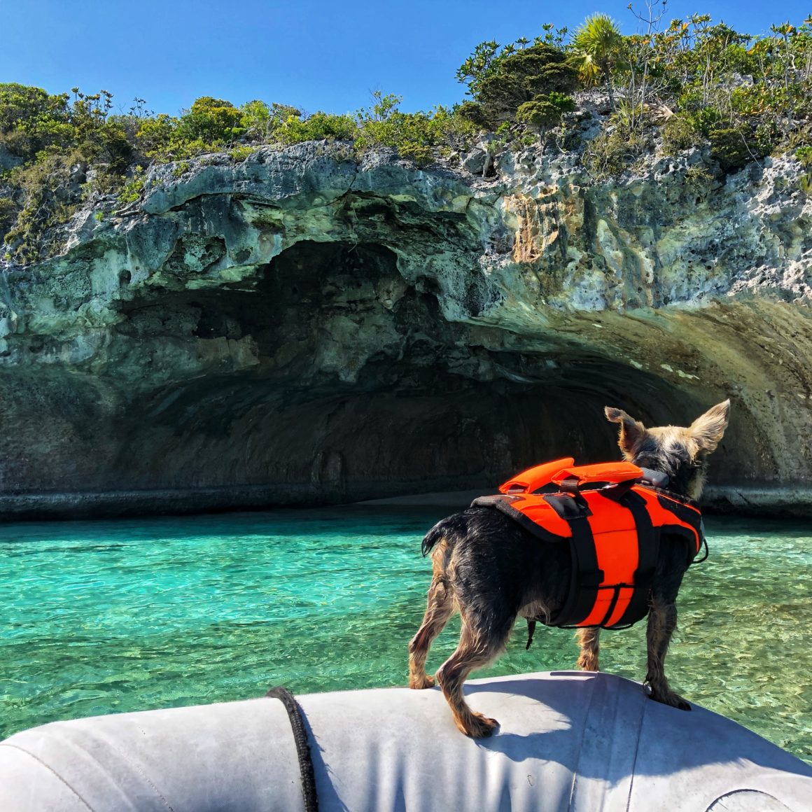 Late the next morning, we pick up our anchor and continue on our way south. We know that we will be navigating some shallow and tricky areas, so we leave shortly before high tide (or so we think; apparently we aren’t very good at knowing the tides). We are loosely aiming to anchor at Leaf Cay, as someone on Active Captain said that there is good snorkeling there. When we actually arrive to Leaf Cay, we notice the water looks a bit rough. There is a mono-hull anchored there already and they are rock’n and rolling. Tucking in past them, the water is a bit calmer but it’s almost 15 feet deep. That would require a lot of anchor chain and we would be so close to shore. It seems a bit dangerous if the winds were to shift directions. We decide to continue on to the next anchorage, which is at an old marine research center. The water here is still a bit rough and there isn’t even a nice beach to take Monster to. Next.