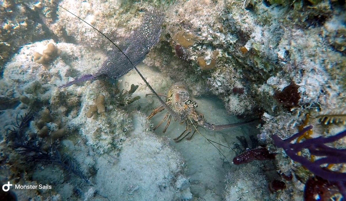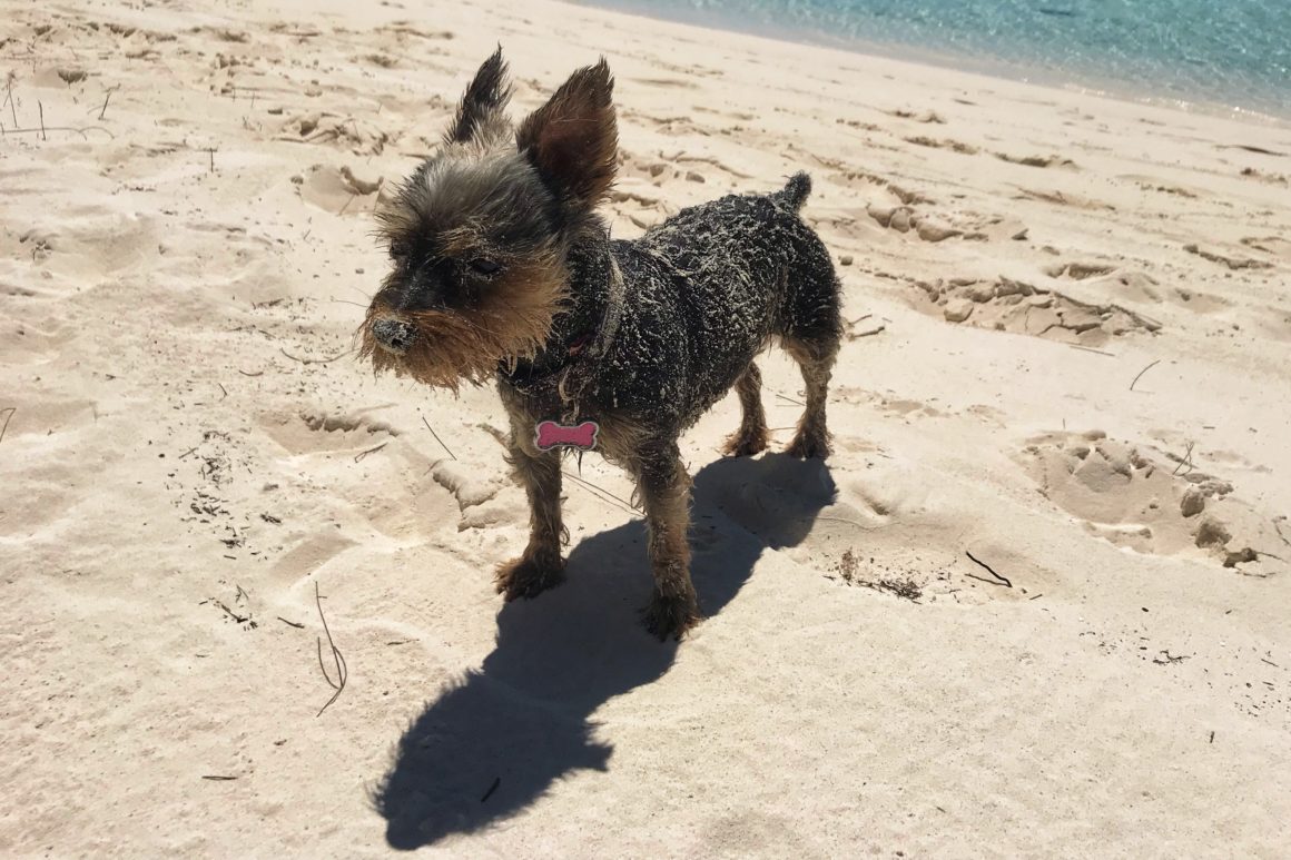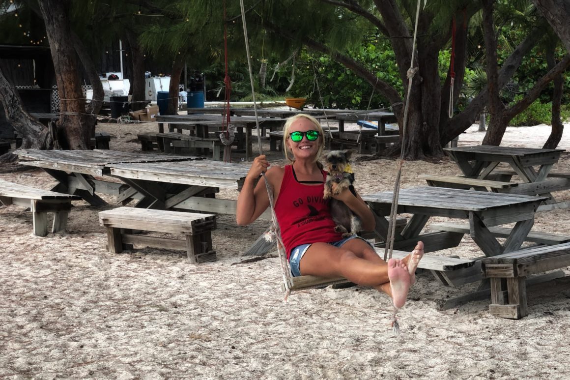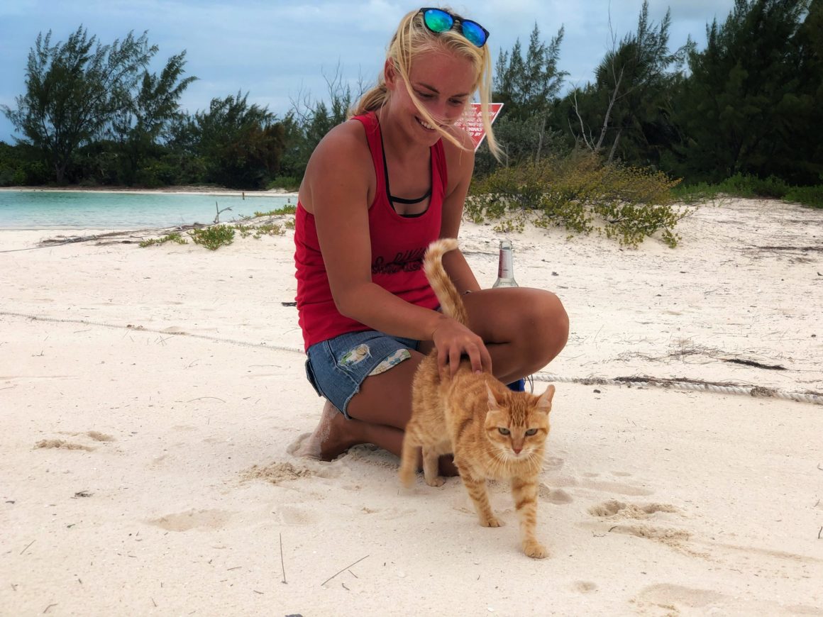 During the day, there are always lots of cruisers and tourists alike surrounding the Chat ‘N Chill. Most of which, today, are quite amused at Monster’s entrance onto the beach. She runs around for a while, making friends, giving smiles, and rolling in way too much sand. She thinks about chasing some of the resident cats on the island, but when they stand their ground she quickly changes her mind. I take her into the water to rinse off the sand and check out the friendly sting rays that hang around. Once we’ve both had enough fun, we put on our gear and swim back to the boat.