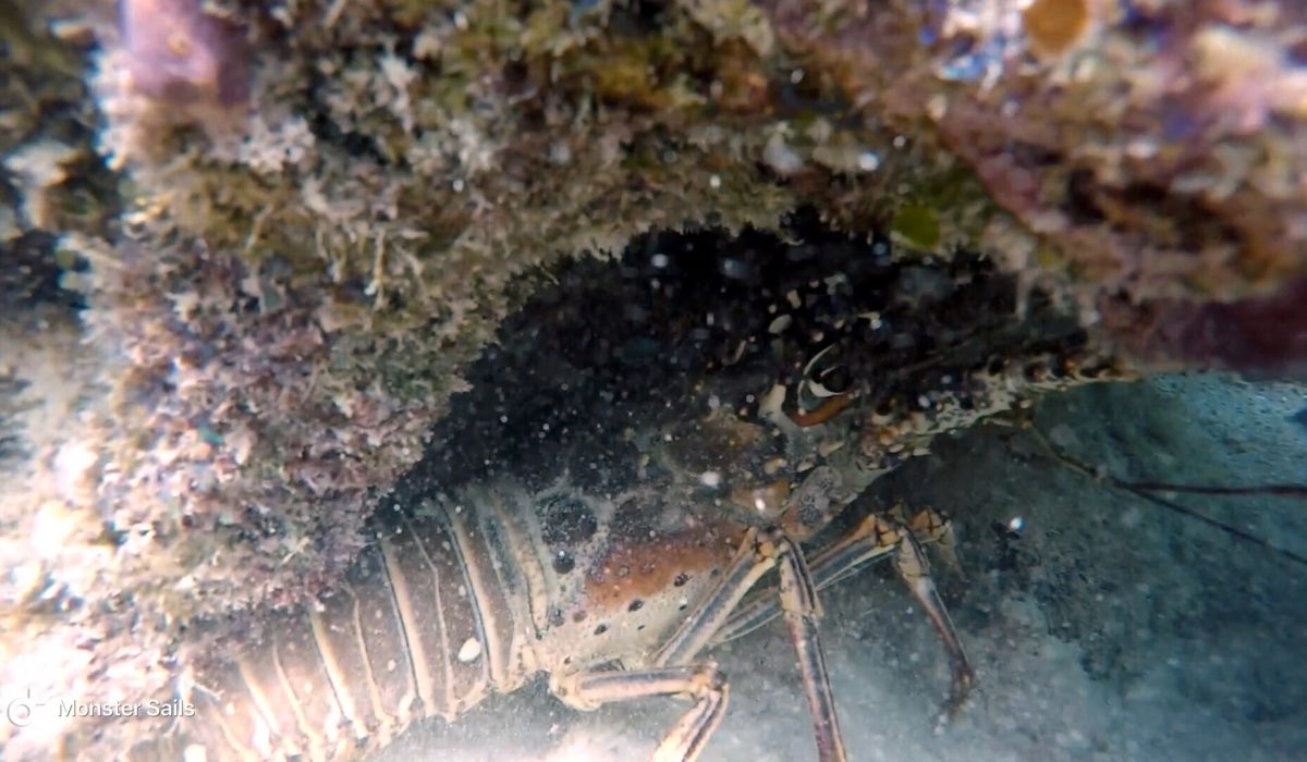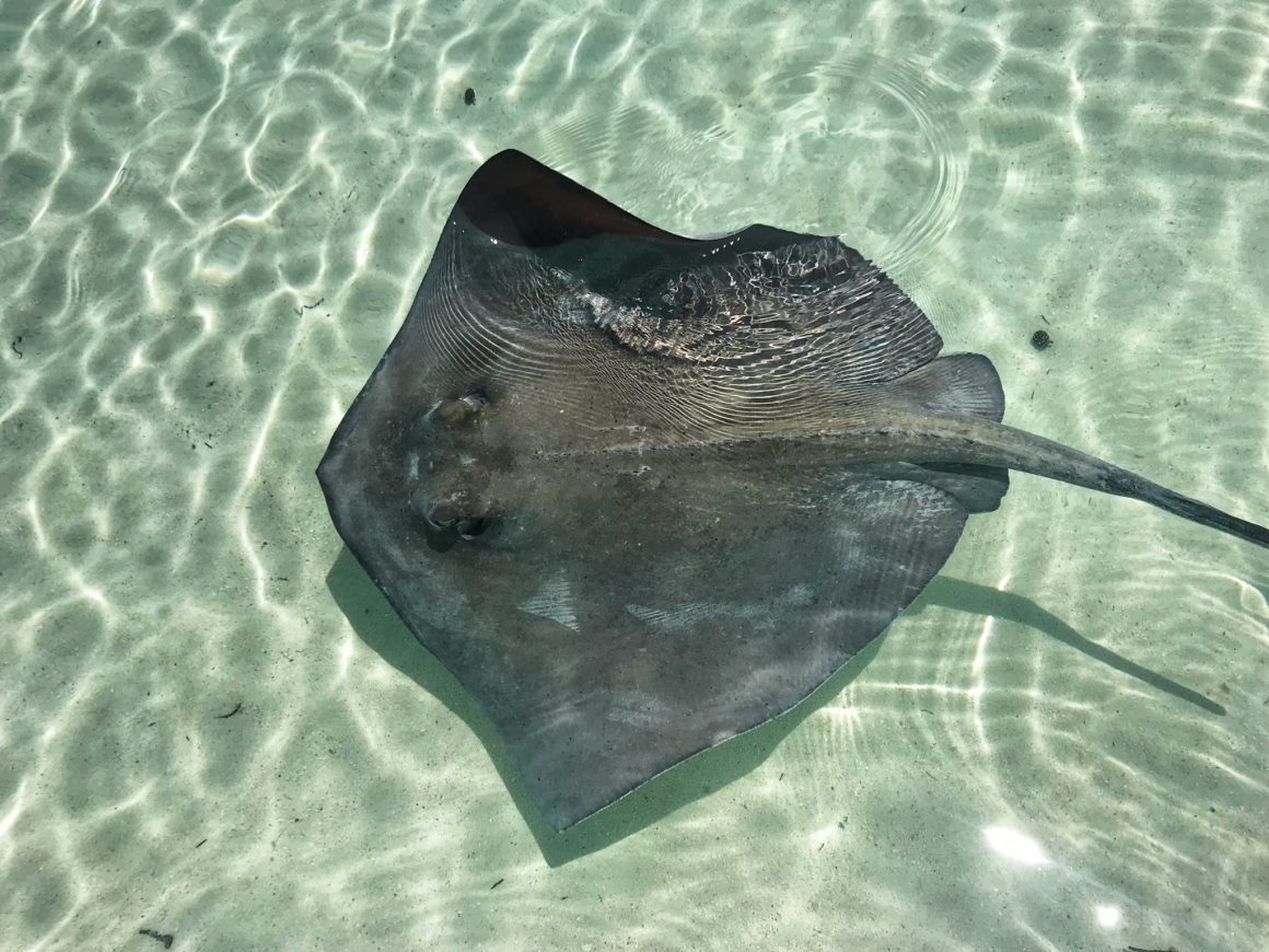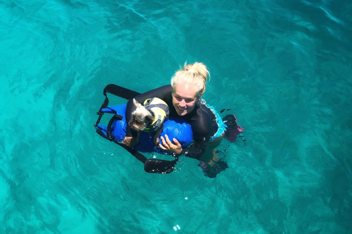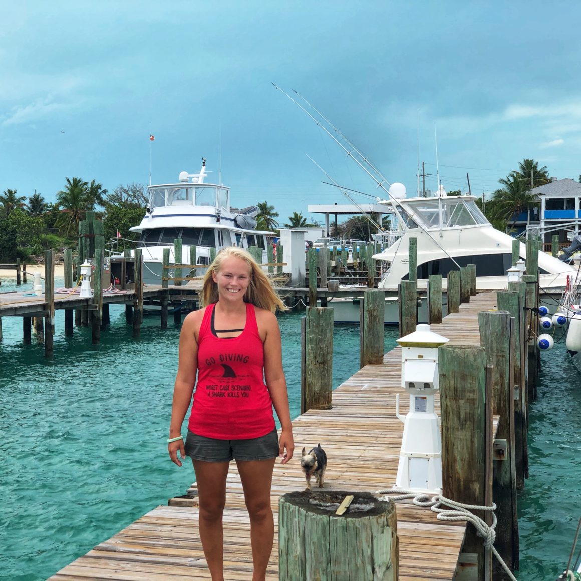 During the day, there are always lots of cruisers and tourists alike surrounding the Chat ‘N Chill. Most of which, today, are quite amused at Monster’s entrance onto the beach. She runs around for a while, making friends, giving smiles, and rolling in way too much sand. She thinks about chasing some of the resident cats on the island, but when they stand their ground she quickly changes her mind. I take her into the water to rinse off the sand and check out the friendly sting rays that hang around. Once we’ve both had enough fun, we put on our gear and swim back to the boat.