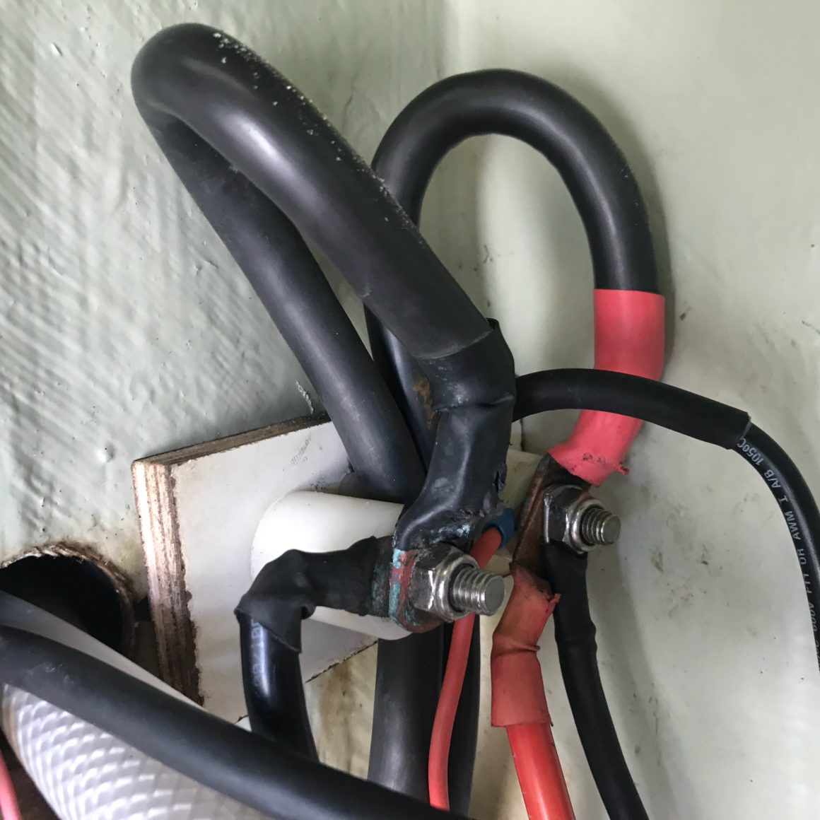 Sometime soon, Matt plans to write a nice detailed blog post about the troubleshooting we did and all our lessons learned. But to save most of you from the agony – the short conclusion is that we traced a bunch of wires and found one spot that was corroded. We cut off the corroded wire, spliced it back together and voila! our windlass is working again!