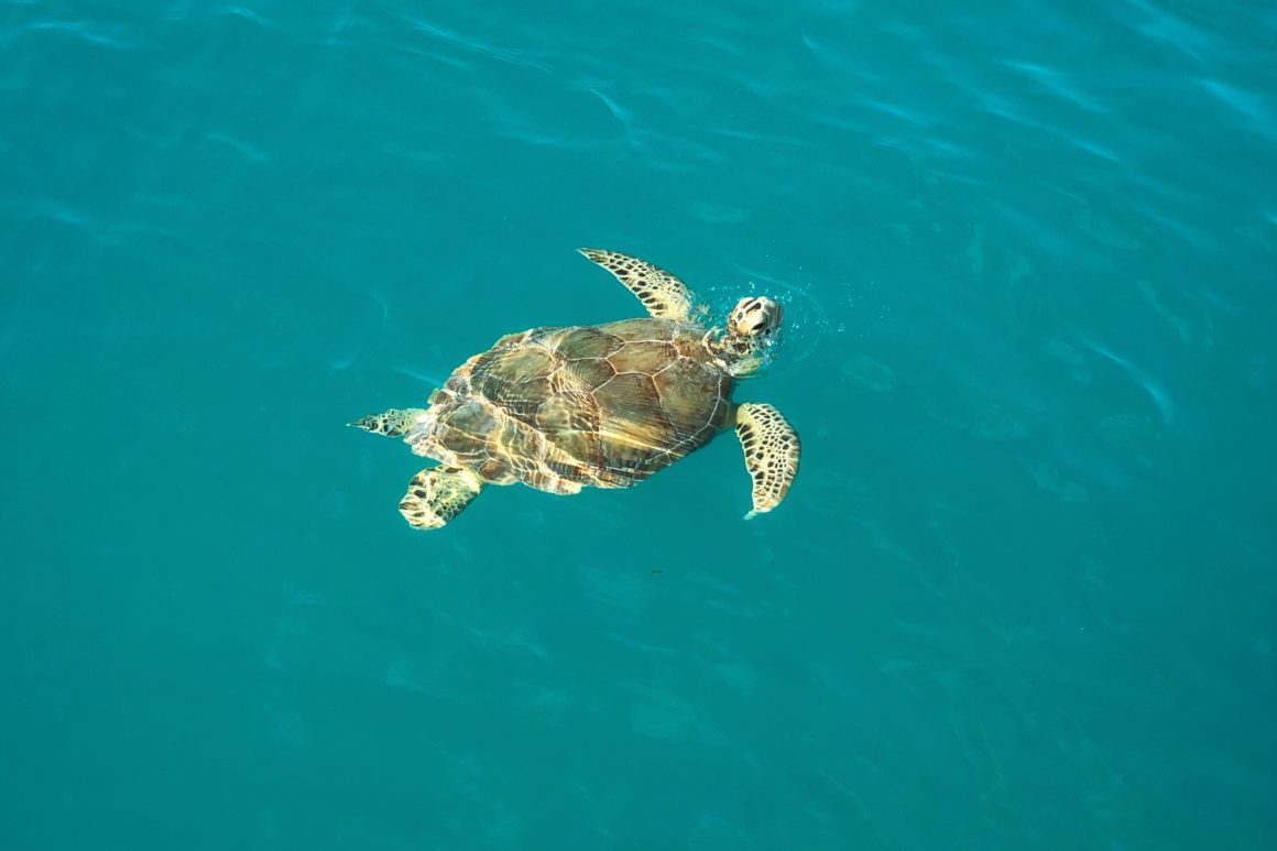 The anchorage is so calm and protected, but as a trade-off, it’s not very pretty and there’s no real beach to speak of. I have to take Monster by paddle board to a small section of sand and rock in order to do her business. There are however turtles in the area to bring some excitement.