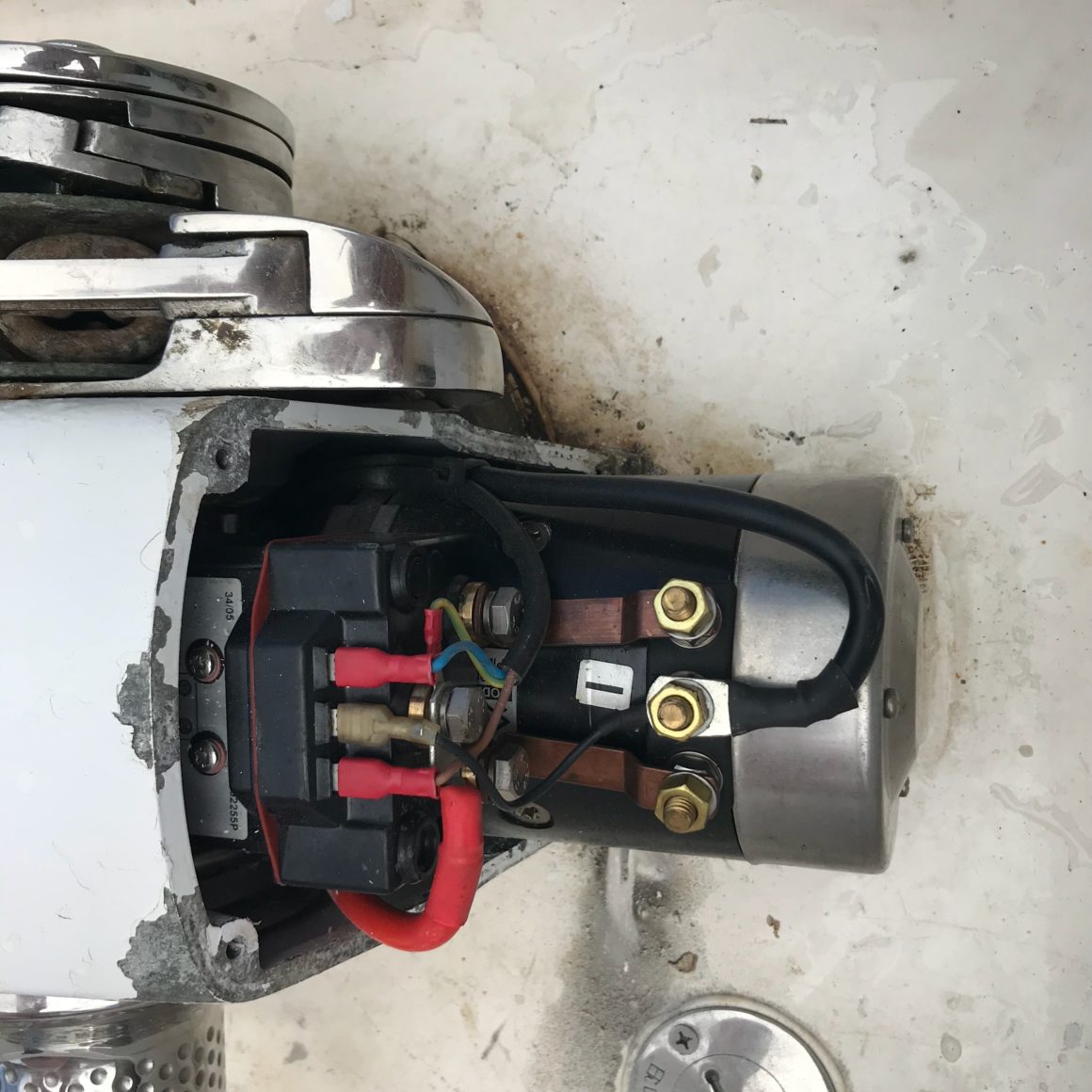 After putting it off for over a day, we decide its time to take a look at the windlass. I give my dad a call, thinking he might have some magical (read – obvious) insight as to what could be wrong. After some insightful information, we are thinking it’s possible the motor is starting to go bad – perhaps a section of the motor brushes. This might explain why sometimes the windlass works and sometimes it doesn’t (when stopped on the “dead” spot of the motor). We try pressing the windlass button – it’s currently not working, again. We manually turn it about a quarter of a turn and try again – it works! Thinking that we’ve found the problem, we thank my dad and begin looking at what it would cost to just replace the entire windlass motor.