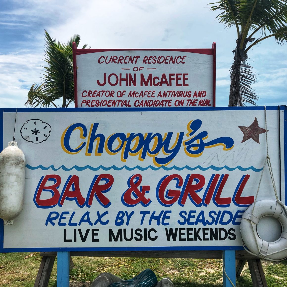 I was searching Google to find info on Exuma Yacht Club status and came across your blog. Didn’t know John McAfee has a gated community on the dock (lol). Must be friends with ex-Formula 1 driver Eddie Irvine who owns the place. Love your details about BTC’s free WiFi, fixing windlass, Chat’N’Chill, getting Monster to shore.