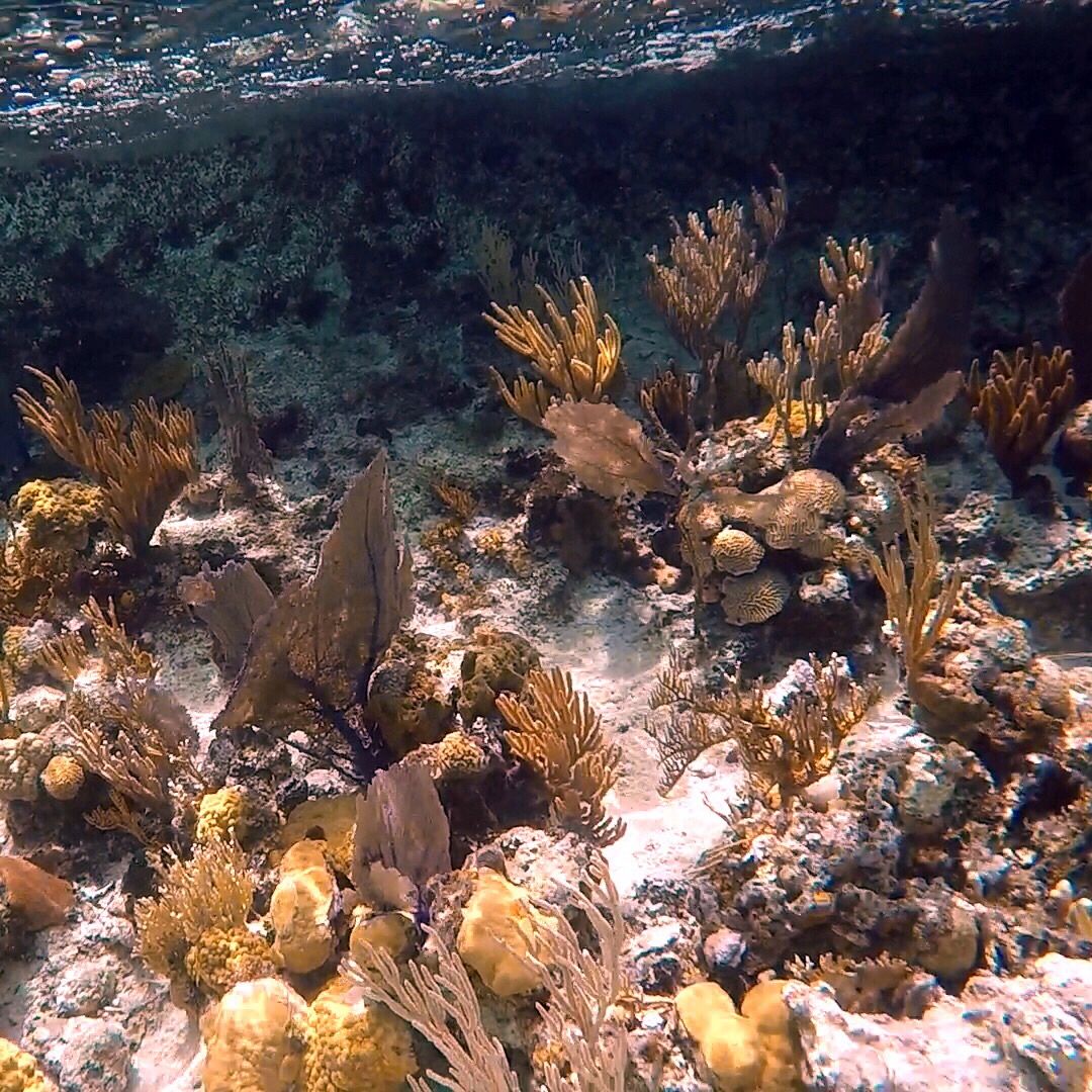 I think that most cruisers dream of anchoring or tying up to a mooring ball somewhere that allows you to jump into the water with mask and fins and immediately be immersed in an underwater aquarium. That’s our dream at least. So far, that hasn’t really been a reality for us much though – except when we were able to tie up to dive mooring balls and hop in with our hookah system! This anchorage at Fowl Cay finally offers that! It’s no dive site, but there are gorgeous, healthy coral heads in 3-12 feet of water with tons of colorful fish swimming around. It isn’t the “best” snorkeling we’ve experienced, but it’s some of the most peaceful.