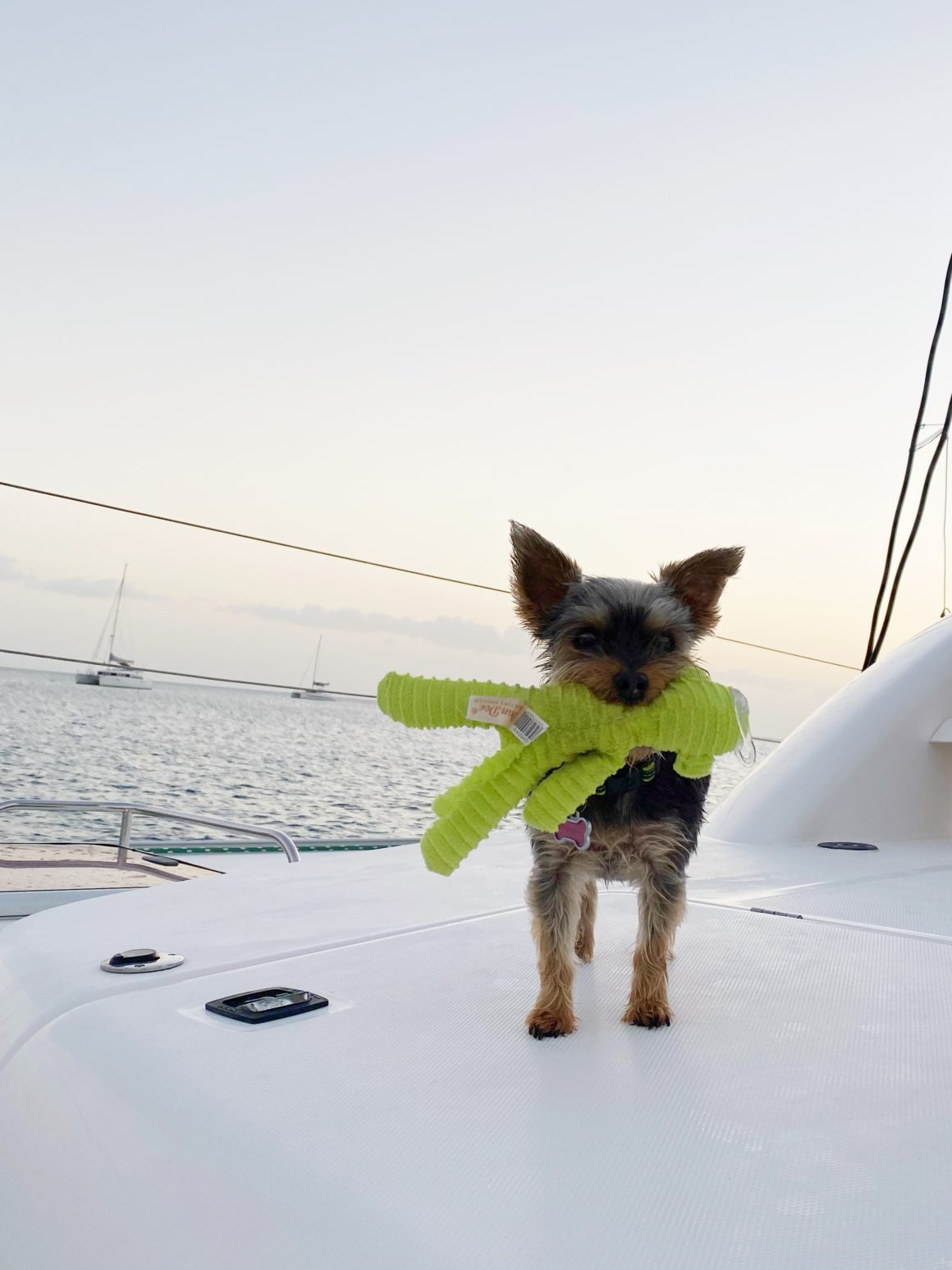 We launch the dinghy to immediately take Monster ashore (shhh…). The sand beach here is fantastic (and huge!). We are looking forward to stretching our legs and letting the little dog run down the beach. She has a blast, and obliges us with a couple quick photo shoots.