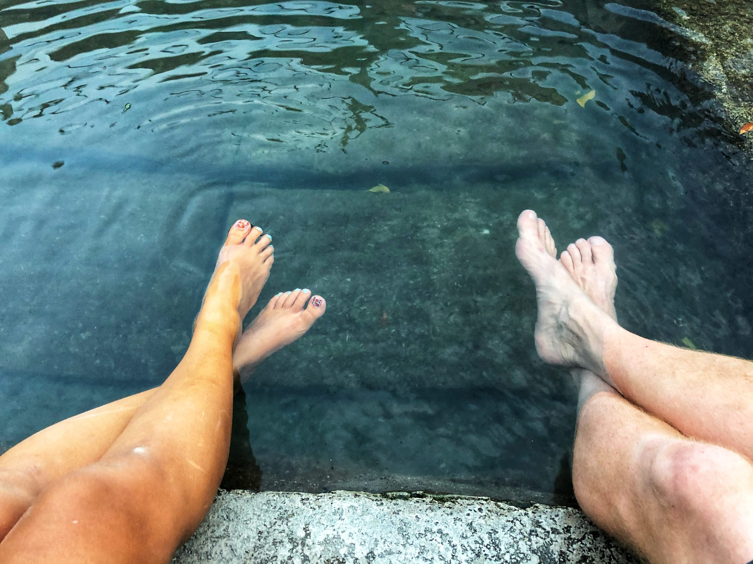 We approach the springs, and are surprised to see only one car with a few tourists stopping by. Otherwise, the spring is full of locals who still use this as a place to bath and soak. There are several small “hot tub” like areas that have been carved out to create more privacy and areas to bath. There’s also the large open area where the hot spring flows through the town. I’m very surprised to see how shallow it is in most places, but definitely not disappointed at the level of “hot.” It’s really, really hot. We place our feet in, but decide that’s enough to experience it.