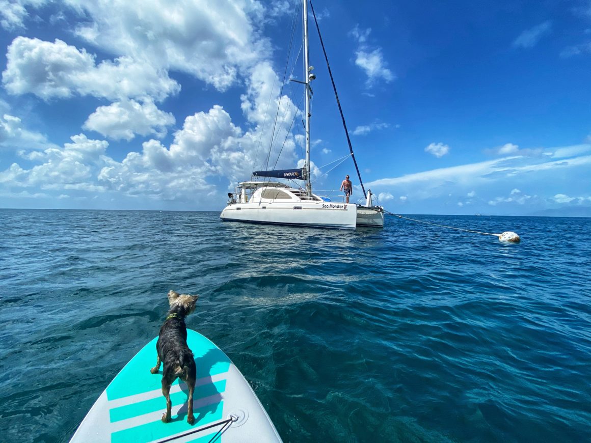 Monster and I paddle board back in the next morning for round 2 of beach time. It is such a great beach – and so few people! We have it almost all to ourselves.