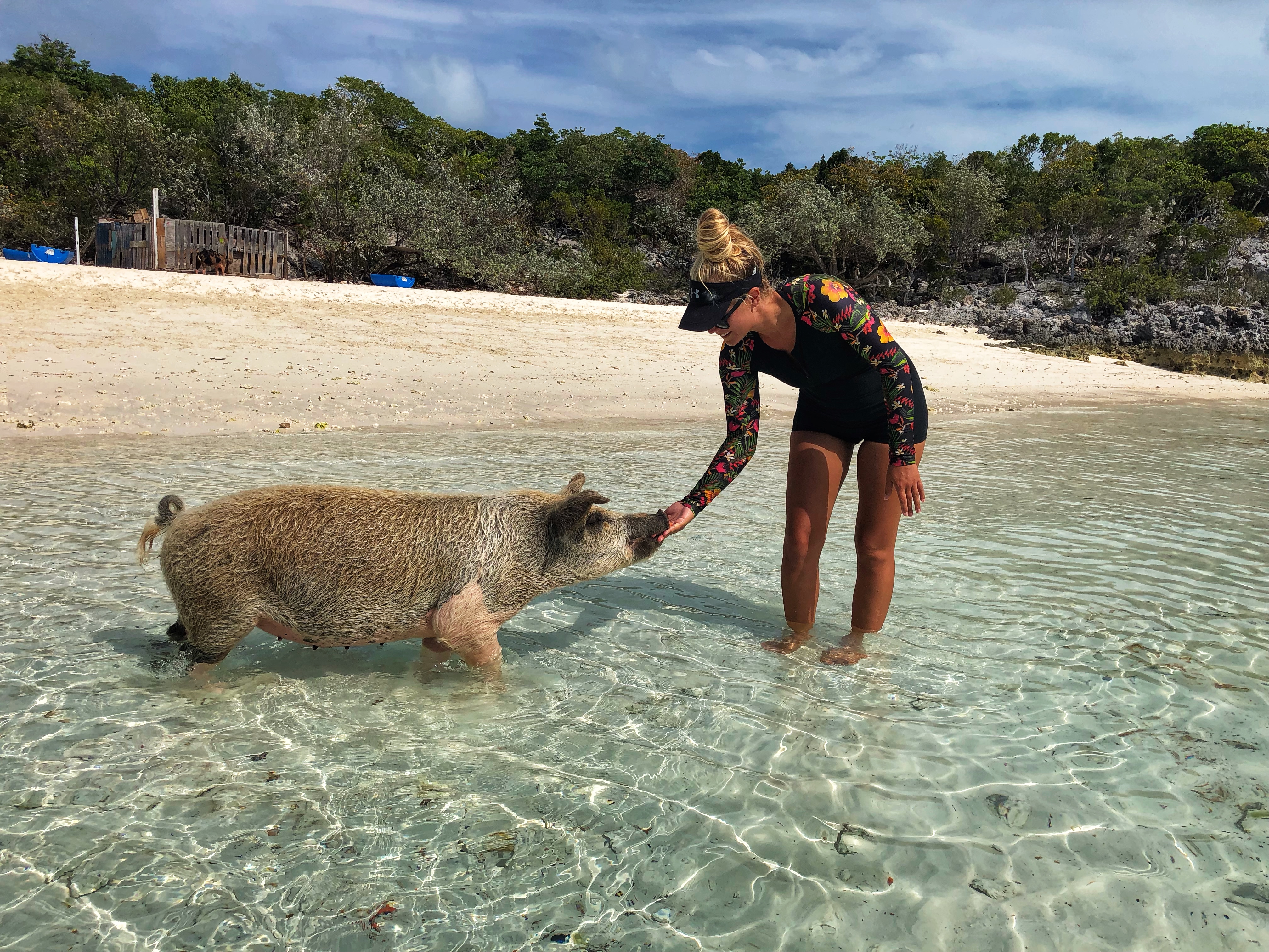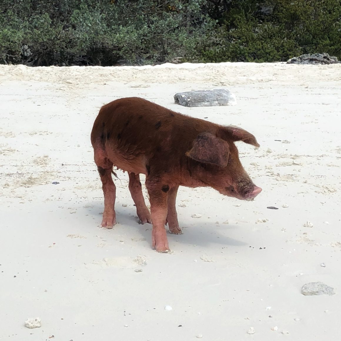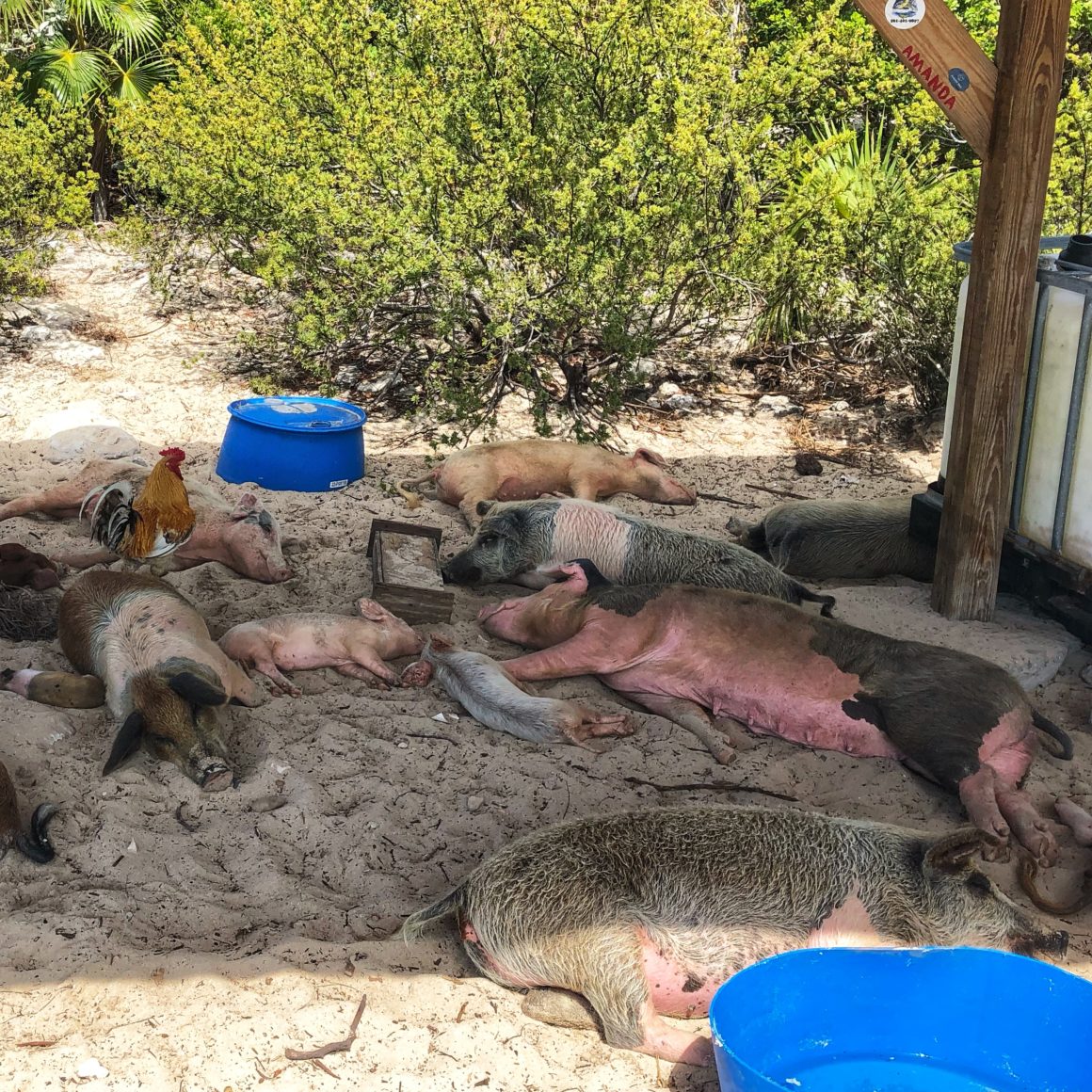 They are called the SWIMMING pigs of the Exumas. All the cool Instagram photos show the pigs swimming up to dinghies and people in the water. Maybe it’s because we didn’t bring them any snacks (I know, I know), but they refuse to swim for us. I feel a bit duped. To be fair though, we have a pretty good vantage point from our floating home and we never see them swim for anyone.