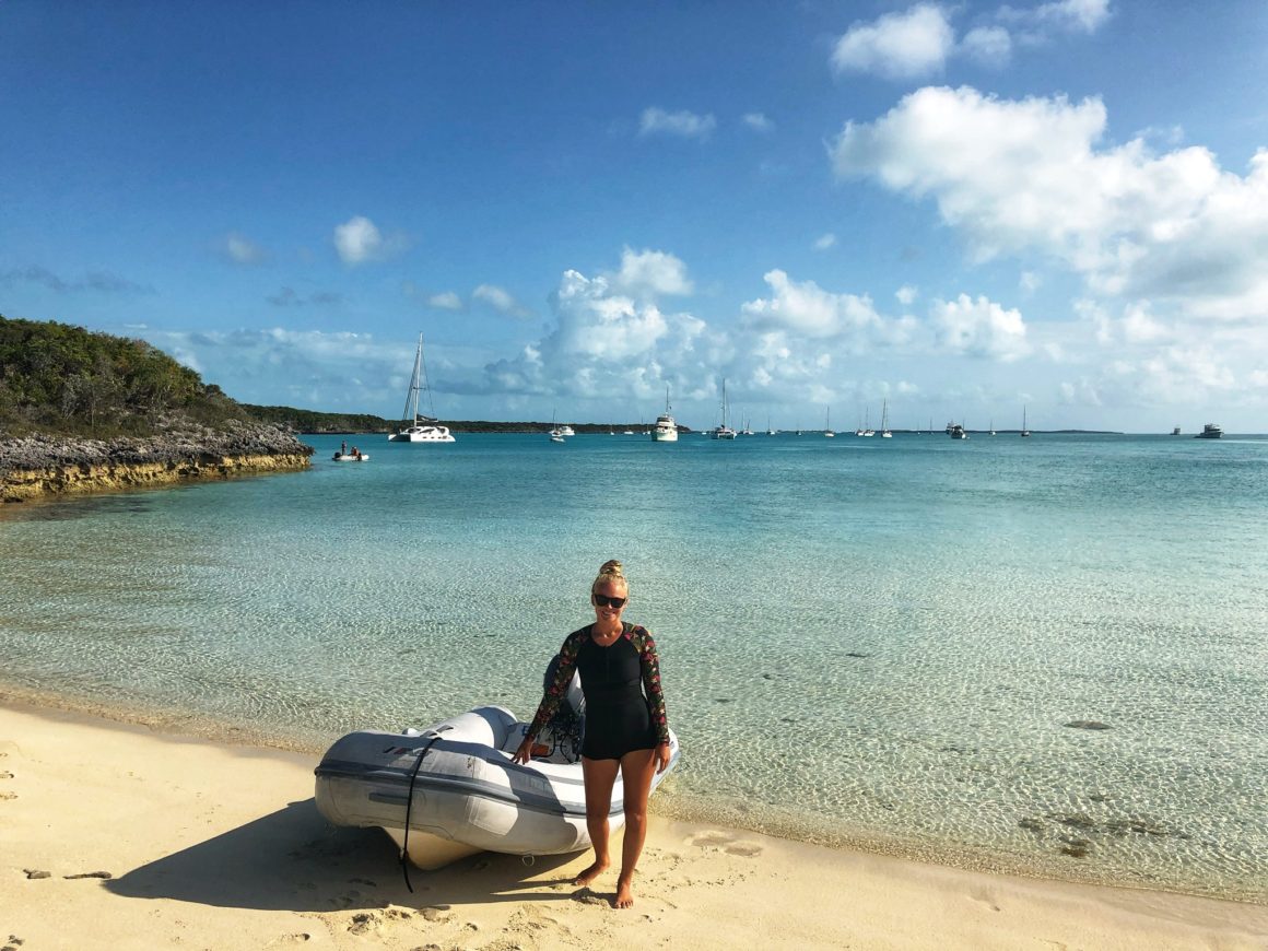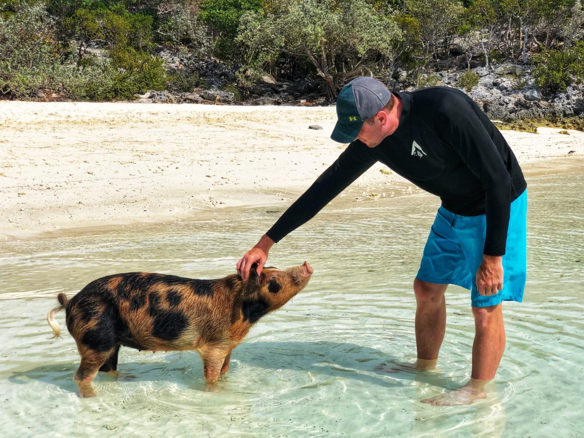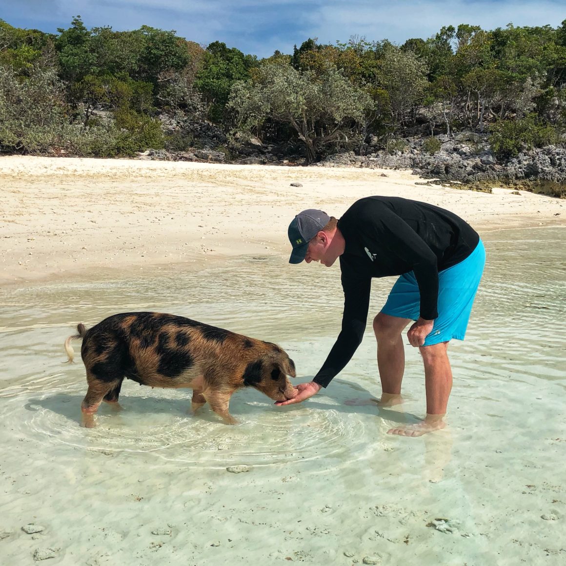 They are called the SWIMMING pigs of the Exumas. All the cool Instagram photos show the pigs swimming up to dinghies and people in the water. Maybe it’s because we didn’t bring them any snacks (I know, I know), but they refuse to swim for us. I feel a bit duped. To be fair though, we have a pretty good vantage point from our floating home and we never see them swim for anyone.