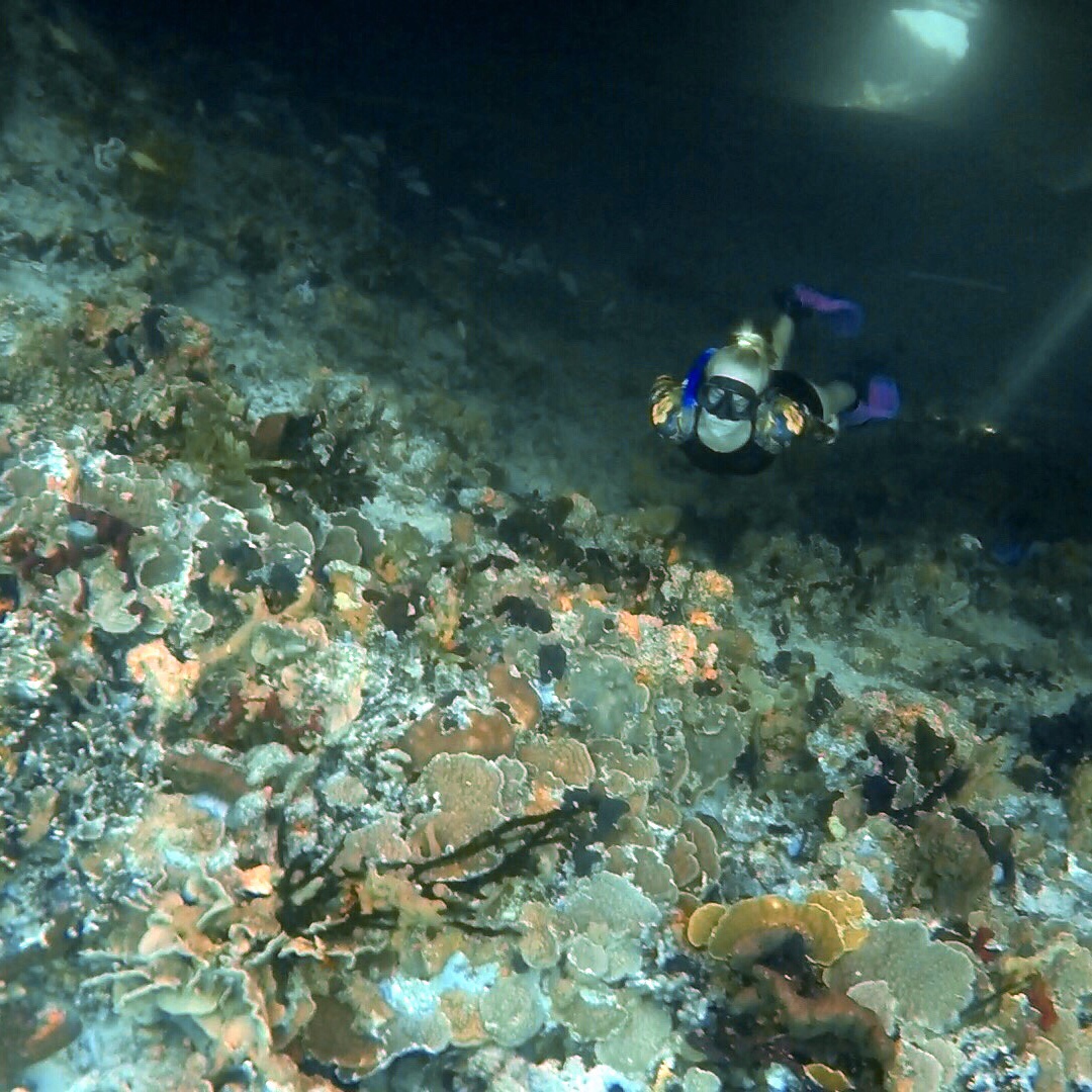 As Matt enters, I see that same current take him by surprise as well – glad it wasn’t just me. Once inside, it looks pretty similar to the Rocky Dundas Caves we explored recently, but a good amount larger. I guess I should look up what makes a “grotto” versus a “cave.” There are several nooks and crannies to explore, so we head off in the direction with no people. We spot a fair amount of fish, including a lion fish.