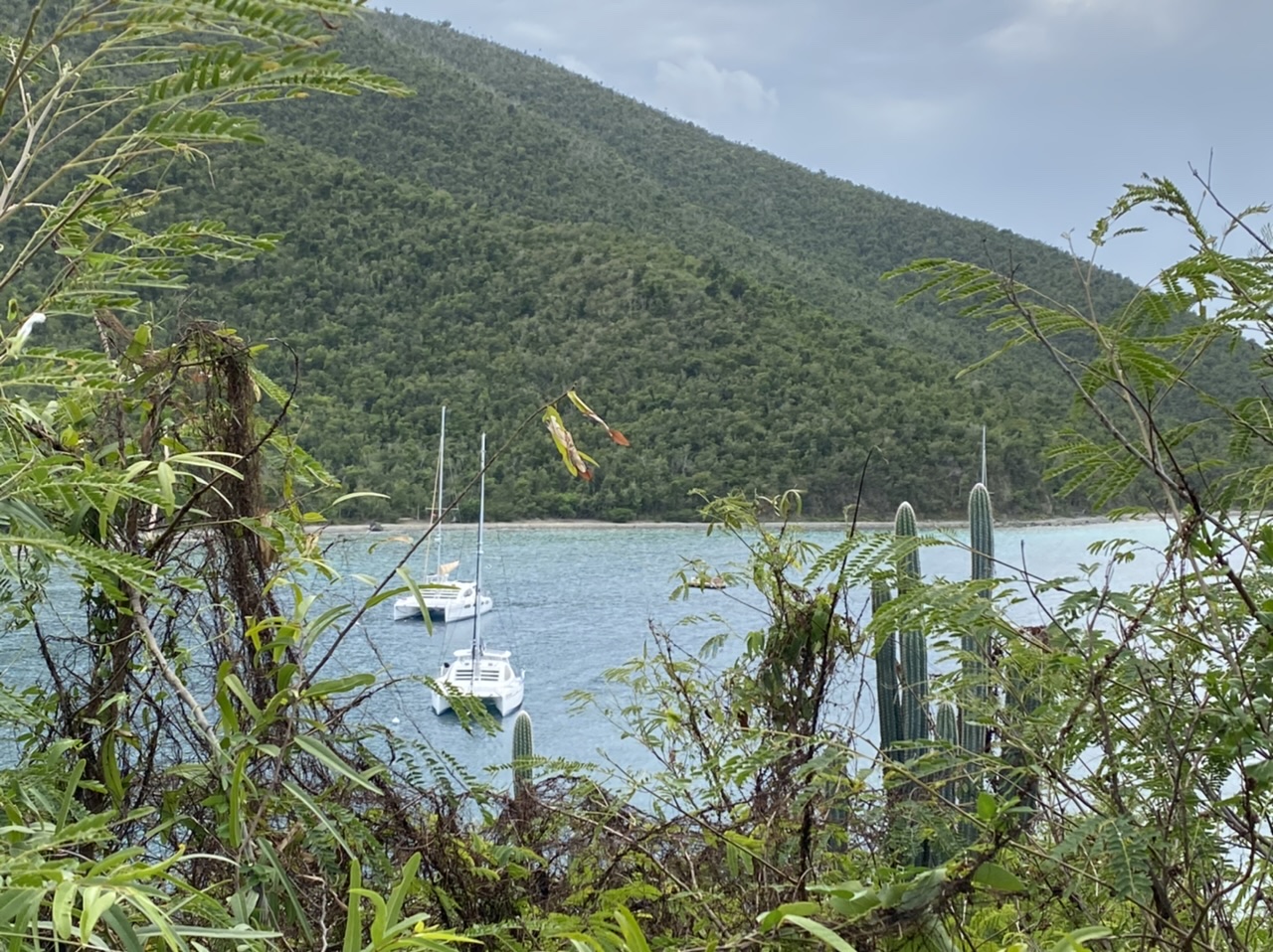 There were a few moorings open in Leinster Bay when we pulled up, but all are full now. There seems to be one or two moorings that turn over each day, so there are some boats still moving. Most boats are staying put, though. One could argue they are simply trying to conform with the COVID recommendations of “shelter in place.” The real reason is that they are afraid if they leave they won’t be able to find another mooring ball around St. John. Cruisers are starting to share info that all mooring balls are full and that causes a bit of a panic. Luckily, (unlike toilet paper) you can’t hoard mooring balls or some of these boats would have dozens by now.