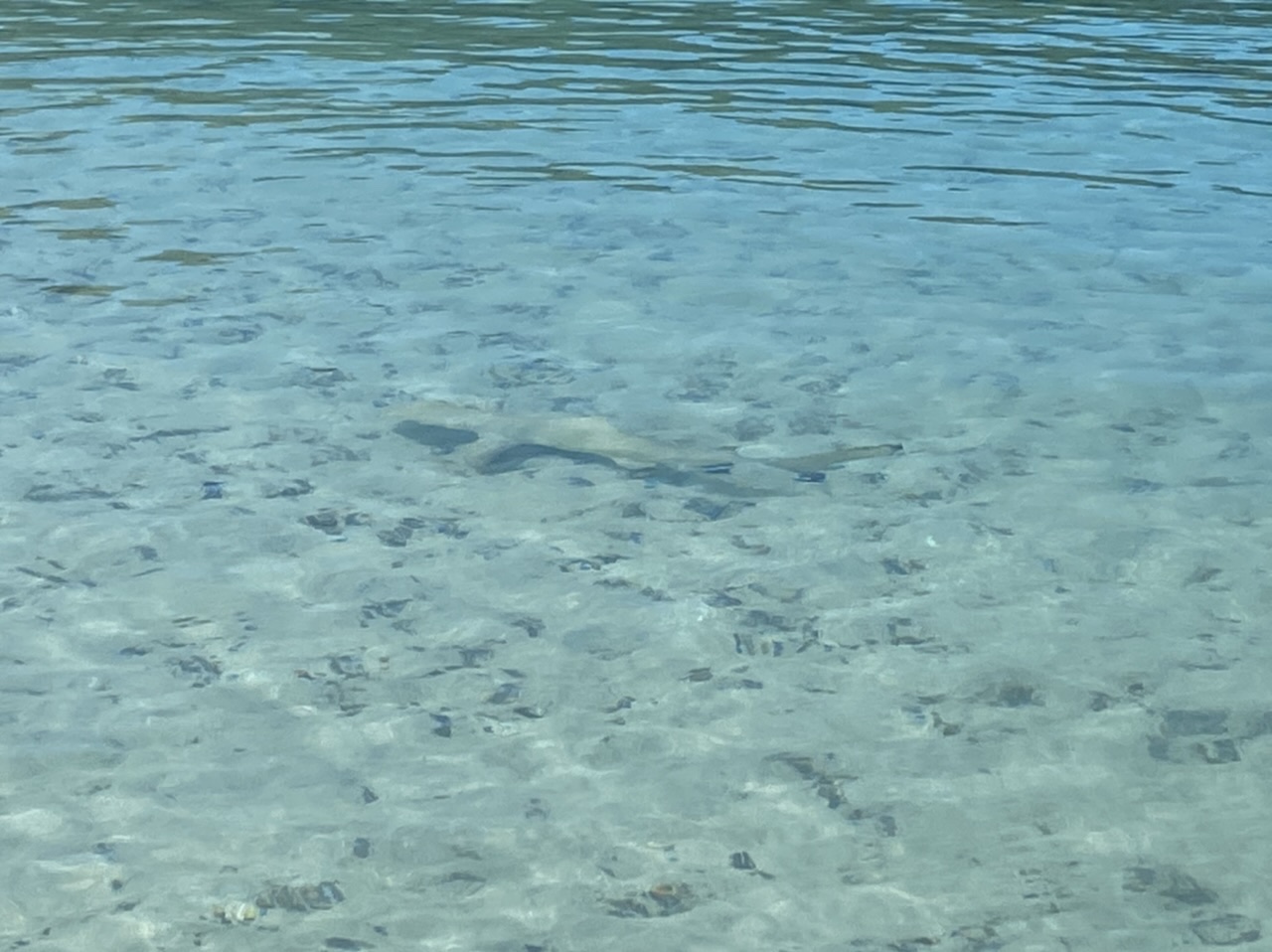 It get’s a bit late, so we decide to visit with Dorothy Rose tomorrow. After waking up and getting some work done, we decide to go ahead and motor over to the large mooring field since we think we see some open balls. We figure we can always retreat back to Whistling Cay at night time. This also allows Monster and I to paddle into the gorgeous Maho Beach. Along our walk we spot a baby lemon shark! After speaking with some others, it sounds like this shark can be found along the shoreline most days.