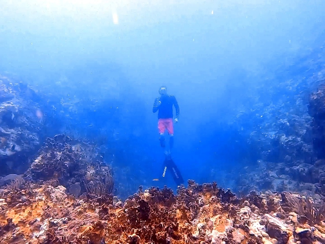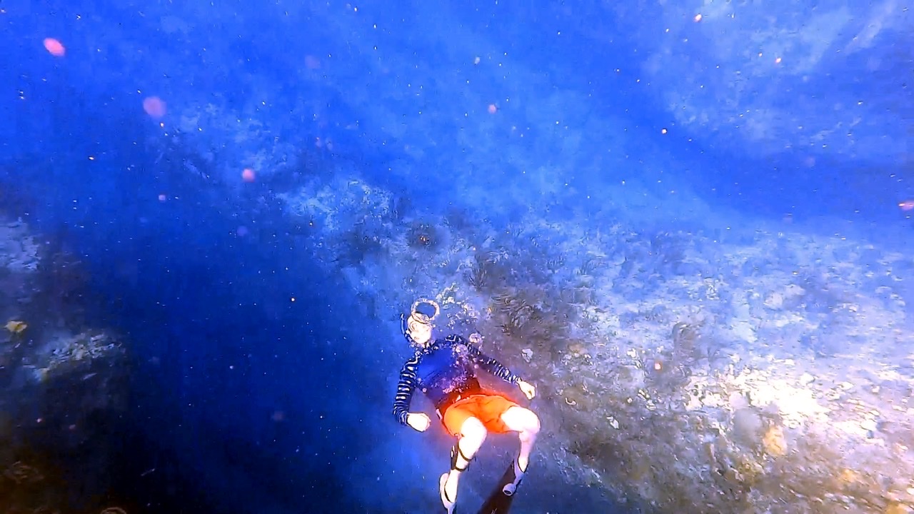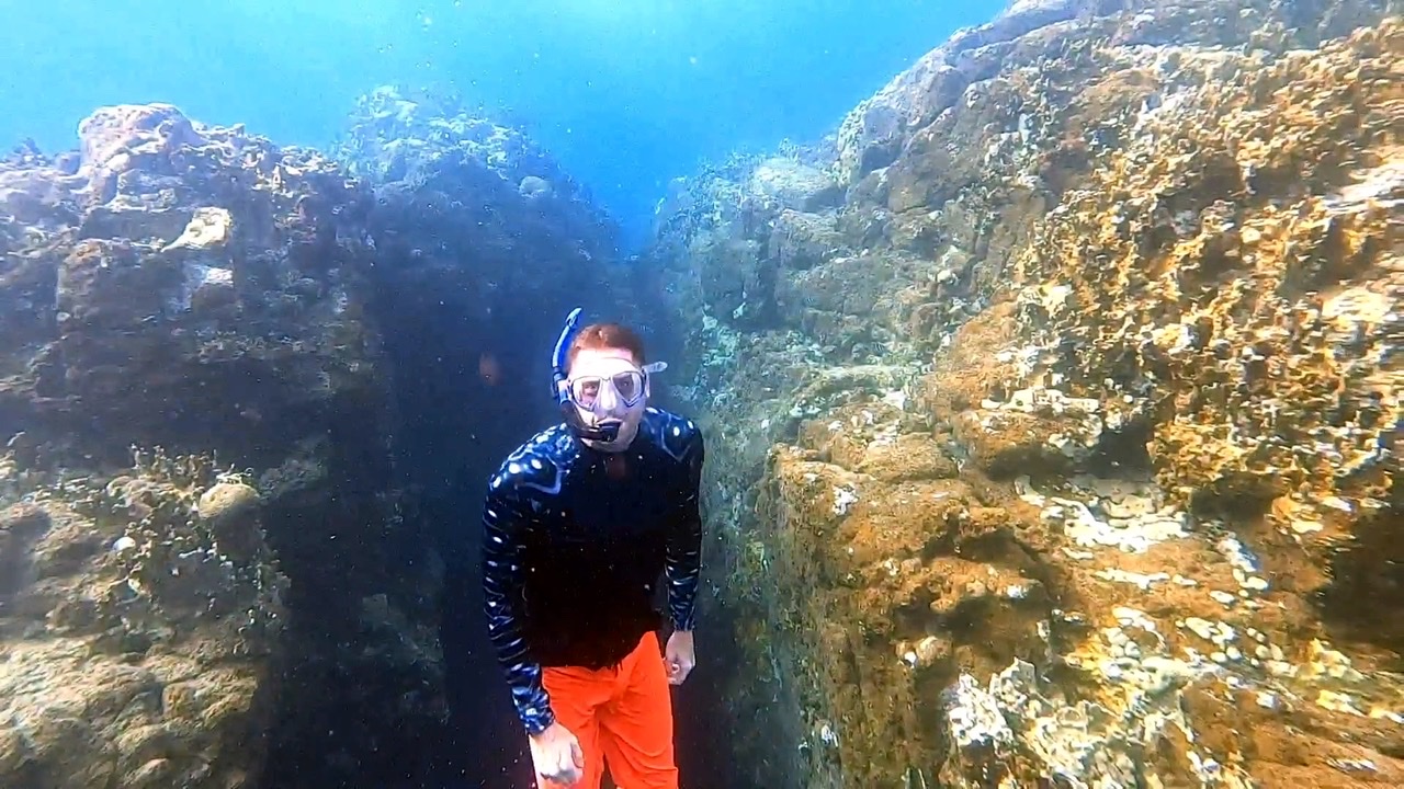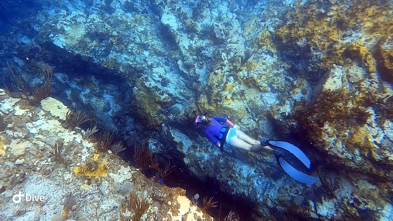Next we choose to hop in at Bronco Billy. Consistent with its name, the surge and current here keeps things interesting. The main highlight of this site are the swim throughs and large trenches. We enjoy taking turns capturing video of each other.