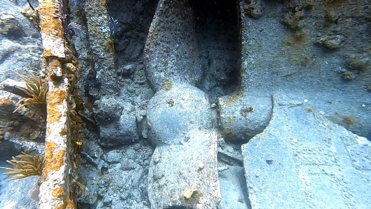 We are pleasantly surprised by the great visibility here at the Rhone. We are able to see the parts of the ship wreck that sit in 60-80 feet of water and even spot a couple reef sharks swimming around the bottom! It’s definitely more fun to explore in shallower areas though where we get up close to the wreck and can peak in the nooks and crannies. It’s very sobering to see things such as this giant propeller and realize just how massive this ship is. The propeller itself is larger than Matt.