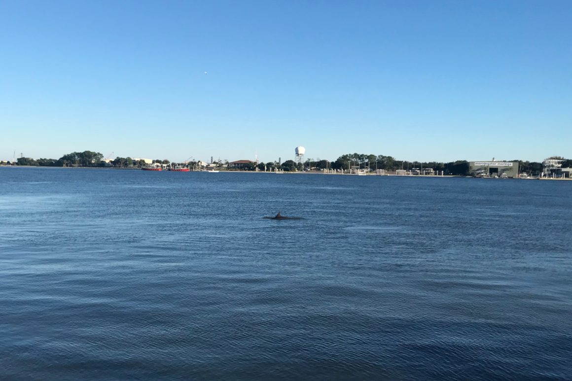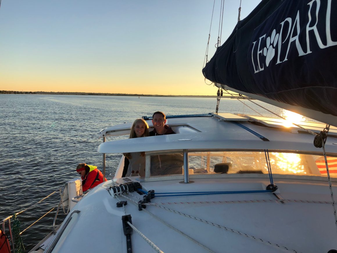 Next it was time to conduct a sea trial, where you actually take the boat out for a brief sail to see how she operates on the water. Our survey day had been a little rough so far (did I mention it was <40 degrees?!), but the sea trial was perfect! There were numerous dolphins swimming and playing along side us and a beautiful sunset as the backdrop. The sail was short but what I imagine every sail should be like.