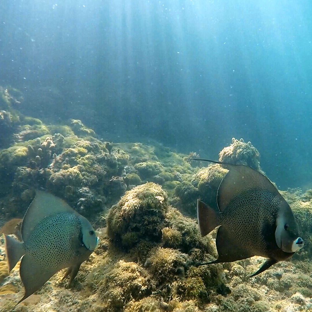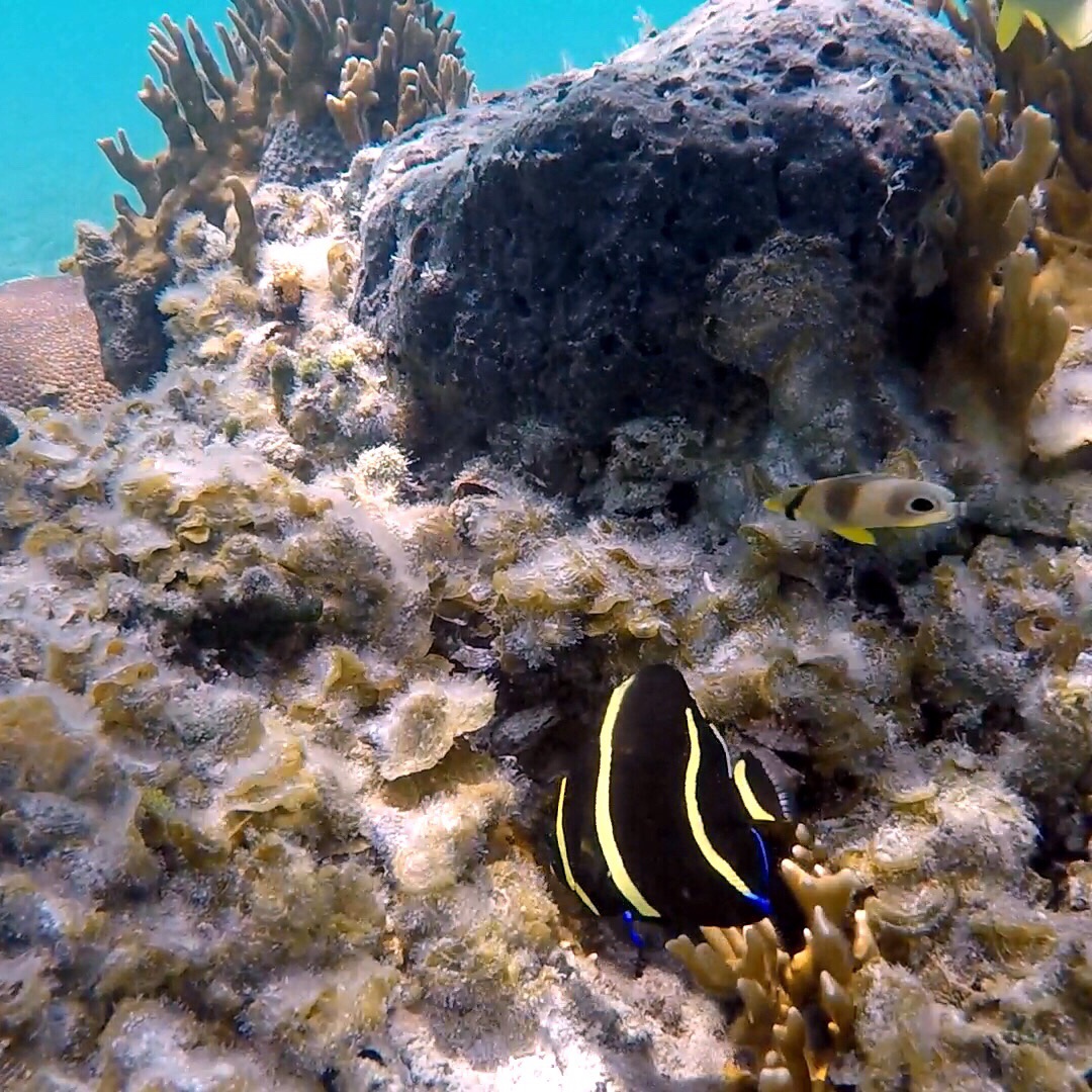 After we have our fill of turtle watching, it’s time to head towards our real target destination – three rocks sticking up out of the water nearby. These remind us of The Indians in the BVIs or The Victories in Bimini, both of which had great snorkeling. We’re feeling optimistic.