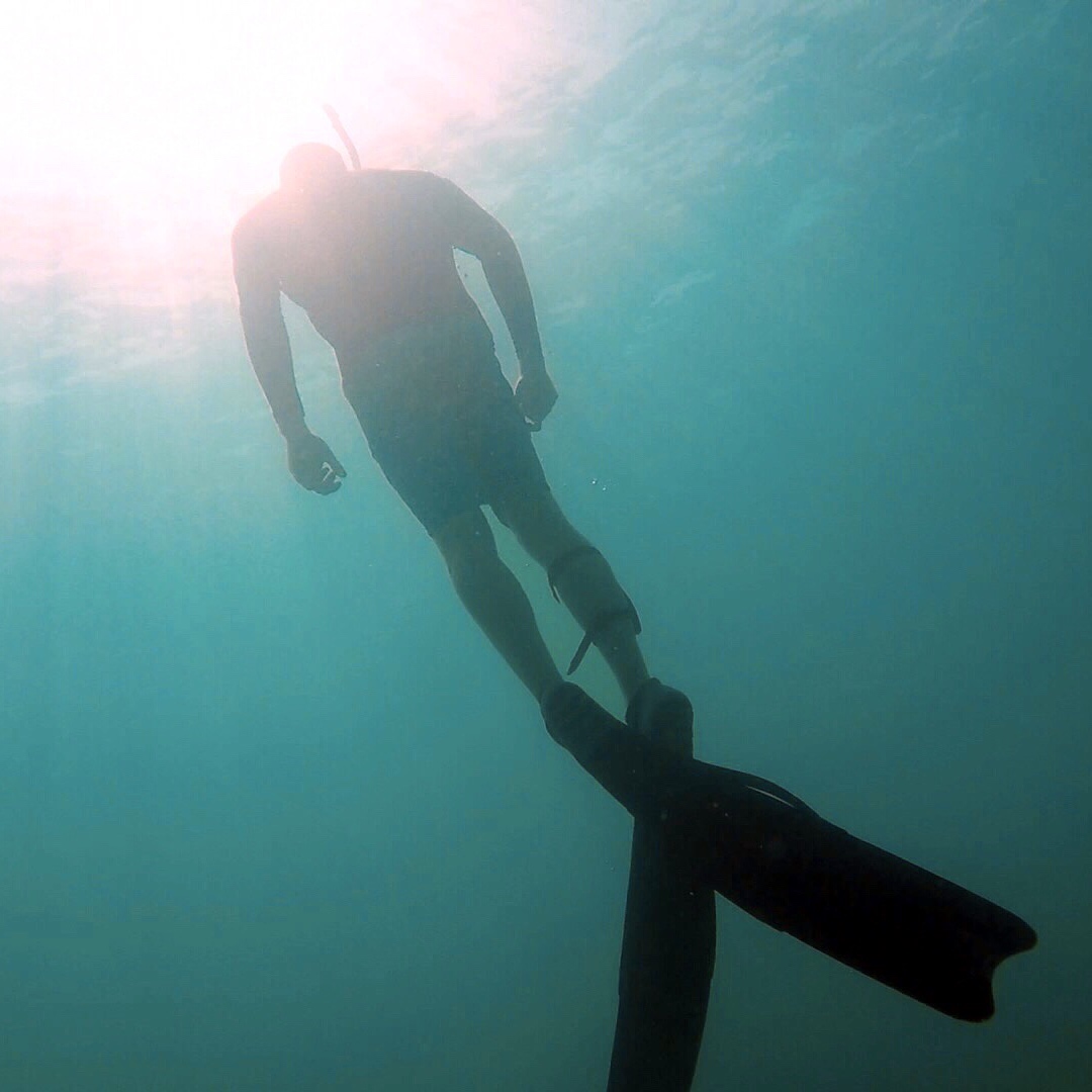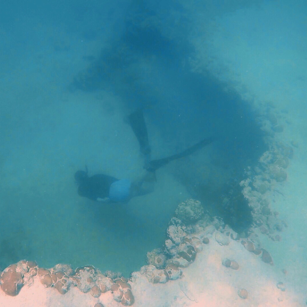 We take turns diving down a few times to have a look around and grab a few photos. There isn’t a ton of life in the blue hole except for some fish, including a few quite large ones. I start getting a bit chilly from all the snorkeling, Monster is crying at us from the dinghy, and the GoPro dies – seems like it is time to get back to our boat.