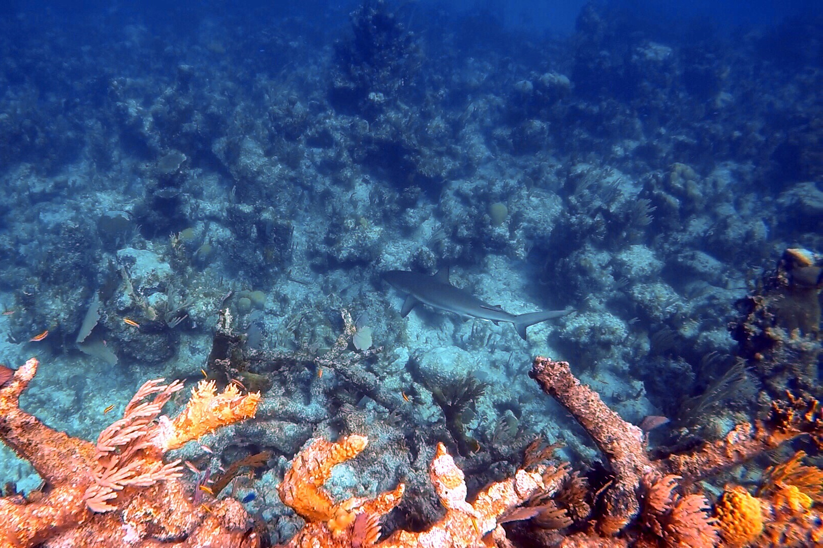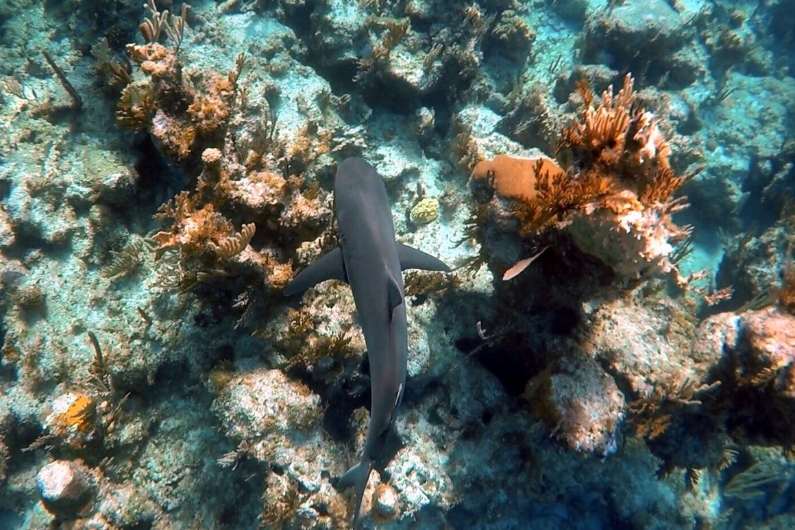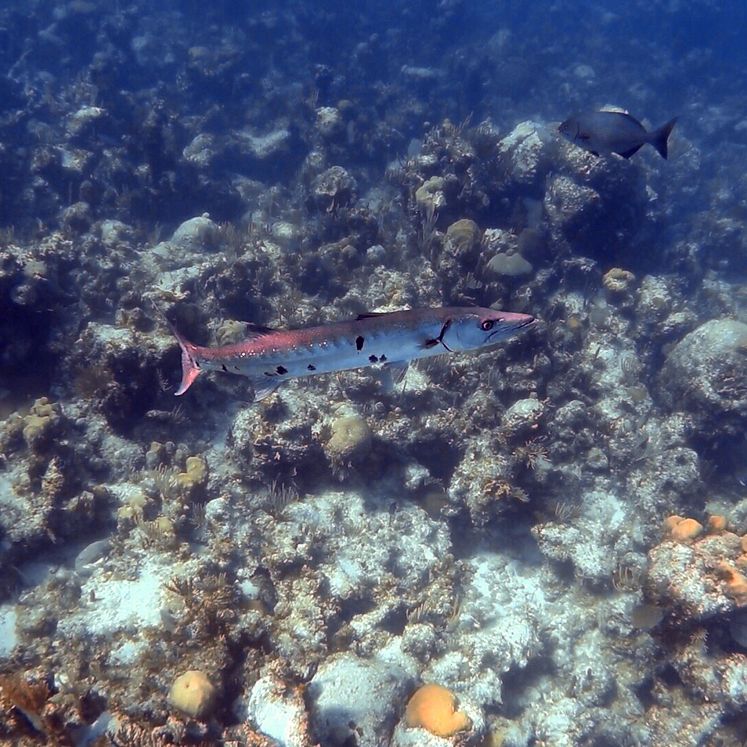 It was totally worth the trip. Gorgeous, healthy, fairly large coral stuck up for as far as you could see with a soft sandy spot off to one side. As soon as we entered the water, we were greeted by a very large, friendly appearing barracuda. Several medium to large fish swam by and not too long after, we spotted a reef shark (a respectable size, but not intimidating). Then, we spotted a crazy large, bright blue fish bigger than any fish I have ever seen (except maybe a large grouper in Cozumel)! I have no idea what it was – looked a bit similar to a parrot fish. I sure wish we could have gotten some better video of him – wow. Our shark friend stuck around nearby for most of the time, but not too close – perfect, polite shark behavior. It was possibly one of the best snorkel sites we have been to. It’s really more of a dive site, but at only 20-30 feet of water, it makes for perfect snorkeling.